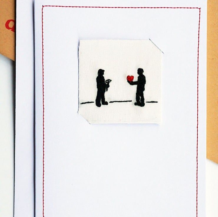 My collection of very special embroidered cards are perfect to give to your love this Valentine's day. Each card holds an intricately stitched mini artwork that can be taken out at any time and framed for permanent display. A machine stitched red border on the front of the cards is the perfect finishing touch.