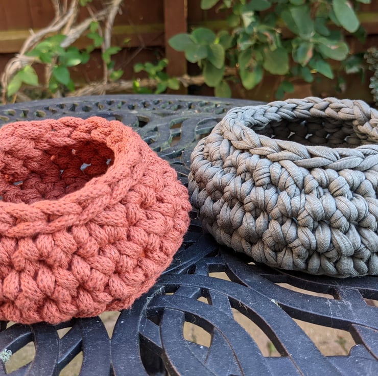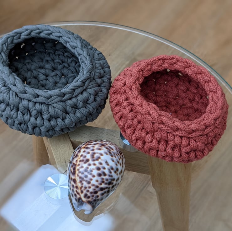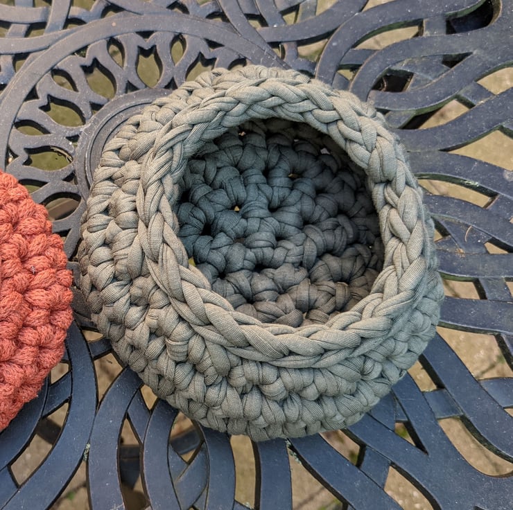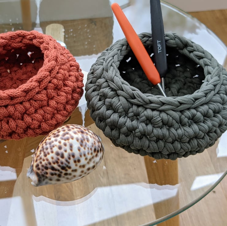 I've recently discovered crocheting with chunky T-shirt yarn and I'm loving making baskets and containers with it. I love how you can clearly see every stitch that went into creating an item and it's a nice change to make something in 3D that's not a toy!