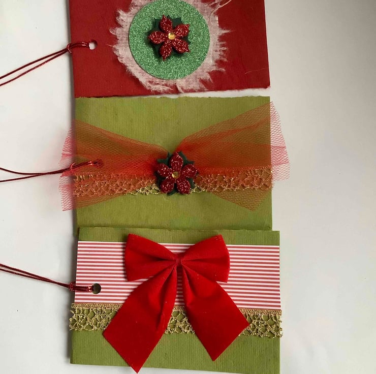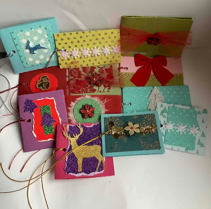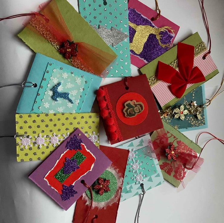 These handmade gift tags are a bit different from shop bought ones and a nice touch to those special festive gifts. 10 of them are fold over cards with enough space inside for a wee message. 2 of them are one sided only but still with a generous space for your message.