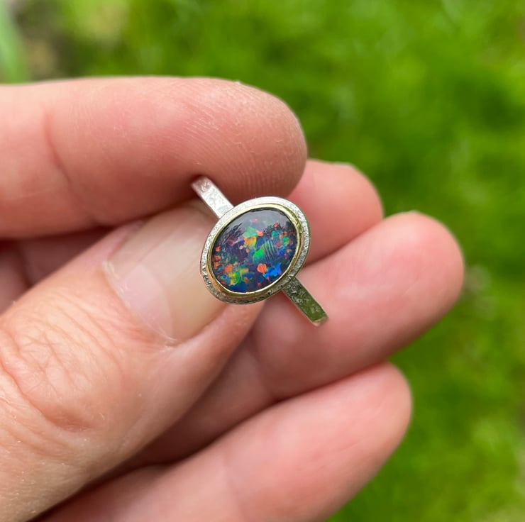 I have set the stone simply in 18ct gold on a silver base and ring.