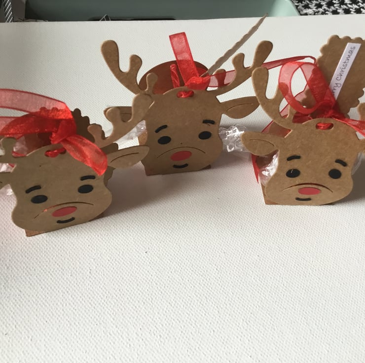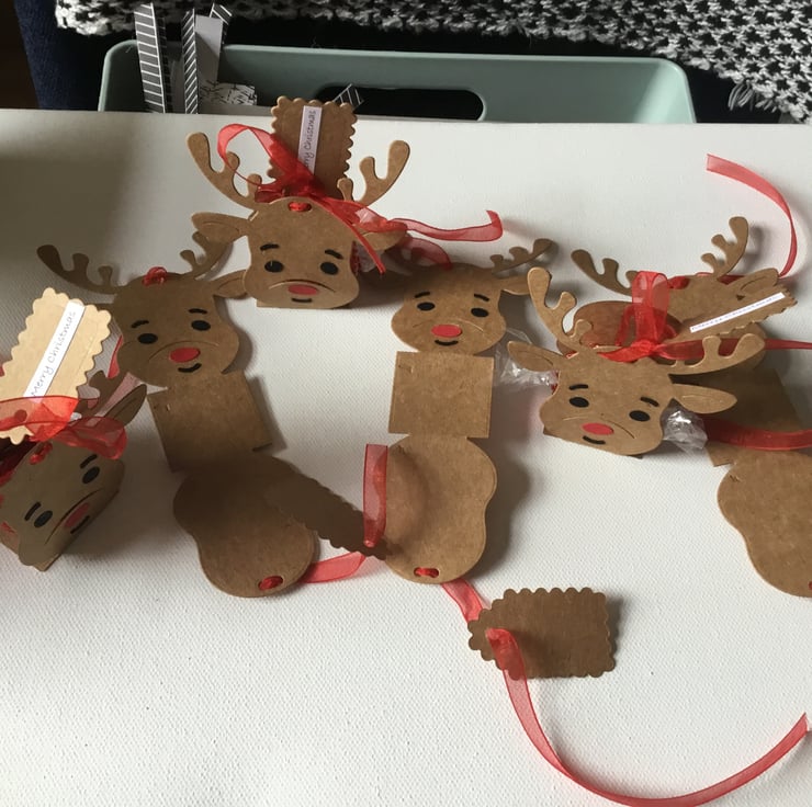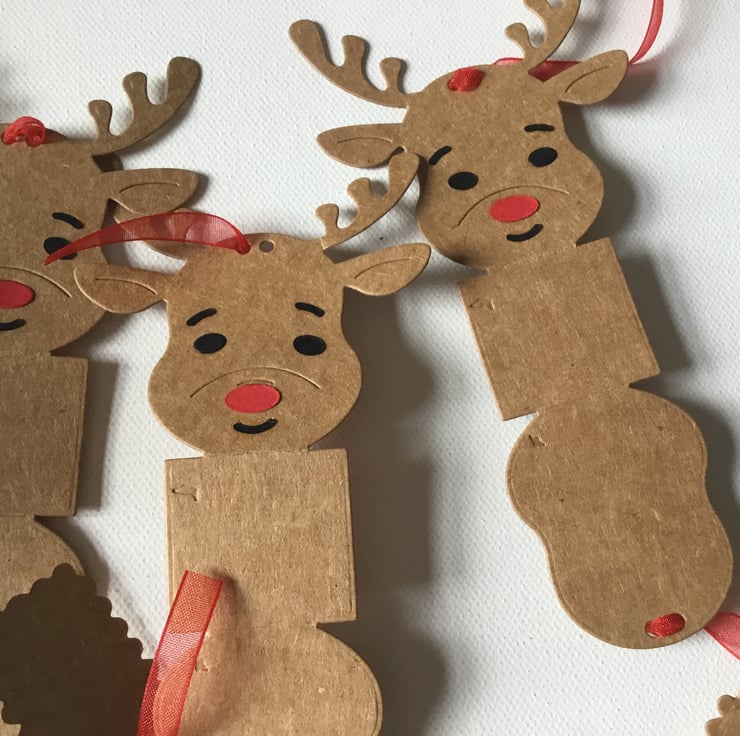 These will arrive already threaded with ribbon and the reindeer will be flat to save on postage.