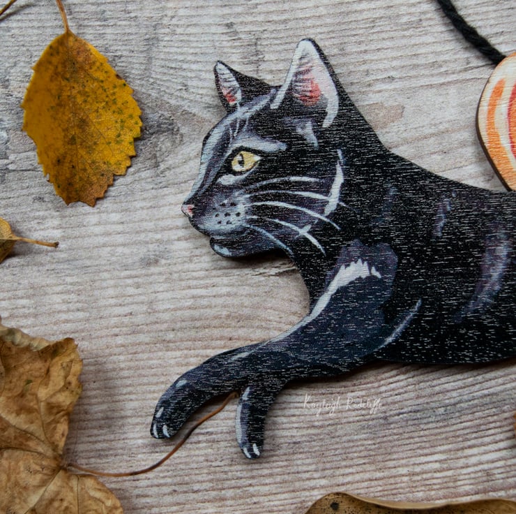 Designed and illustrated by myself, and laser cut and printed in the UK. Double sided and comes with a 100% cotton ribbon which has been made in the UK too.