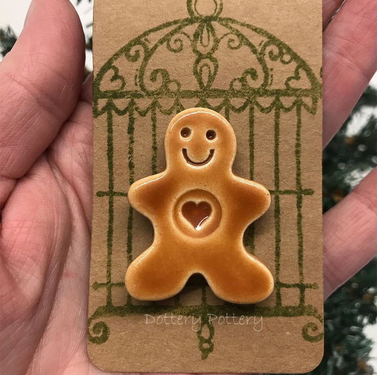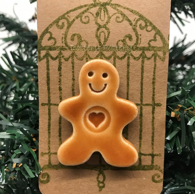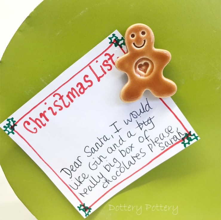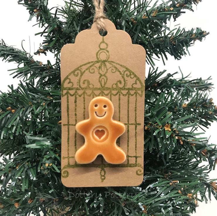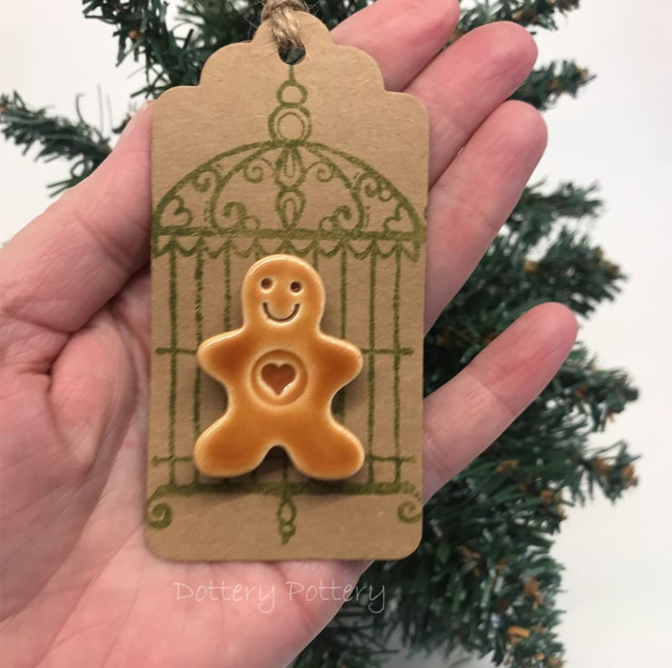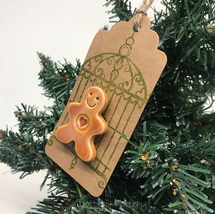 These cute little ceramic gingerbread men have got a magnet stuck to the back, so they can be removed from the backing card and stuck around the house. I've used mine to leave a note for Santa on the fridge - wonder if he'll see it there? They measure approx 4cm x 3cm x 1cm. Including the backing card - they measure 10cm x 5cm. (They are attched to the backing card with a glue dot which is easily removable but if you hang it in the tree, I'm not sure if the warmth of the lights will make it slide off!) The tag is left blank on the back so you can write a message if you like.