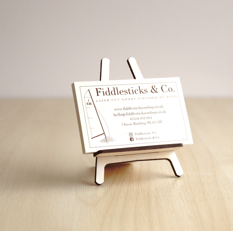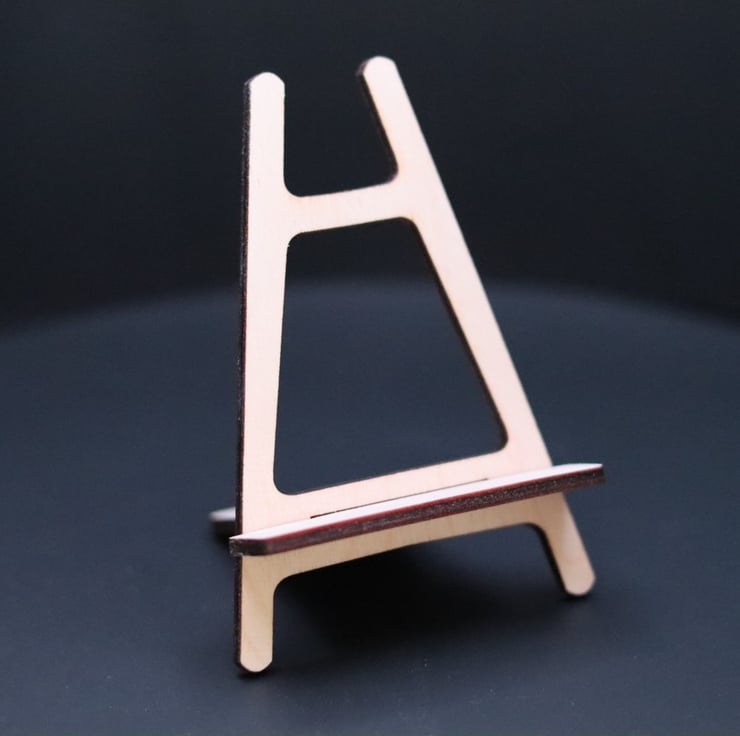 Small but perfectly formed, this little easel is ideal for displaying things like name cards, business cards (and any other types of cards you can think of!) as well as small pieces of art. Each easel is laser cut from 3mm Plywood and is supplied in two separate pieces that slide together to make the easel shape and stand - no glue required!