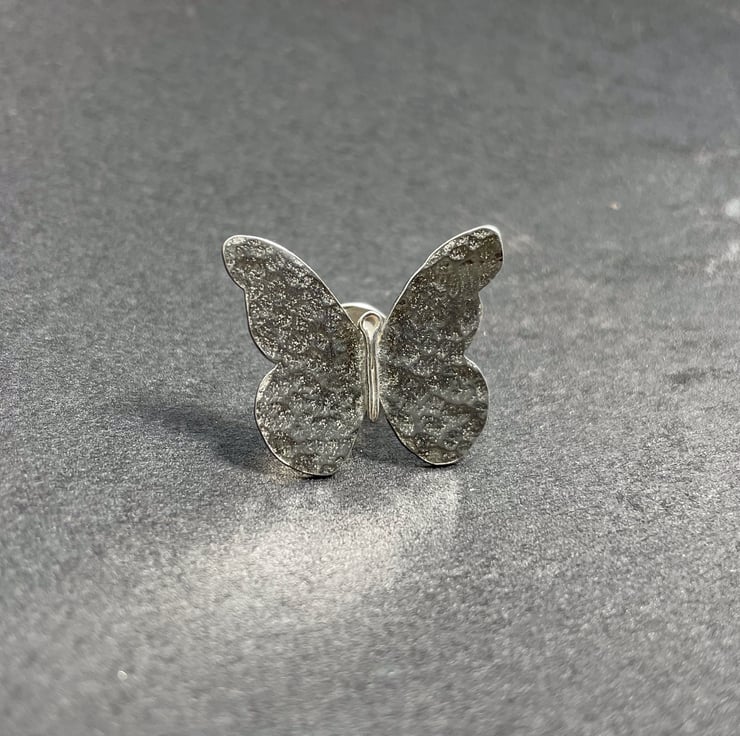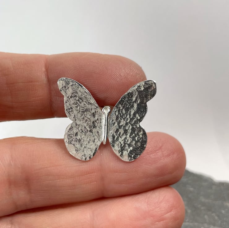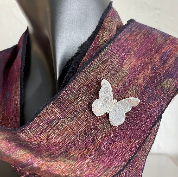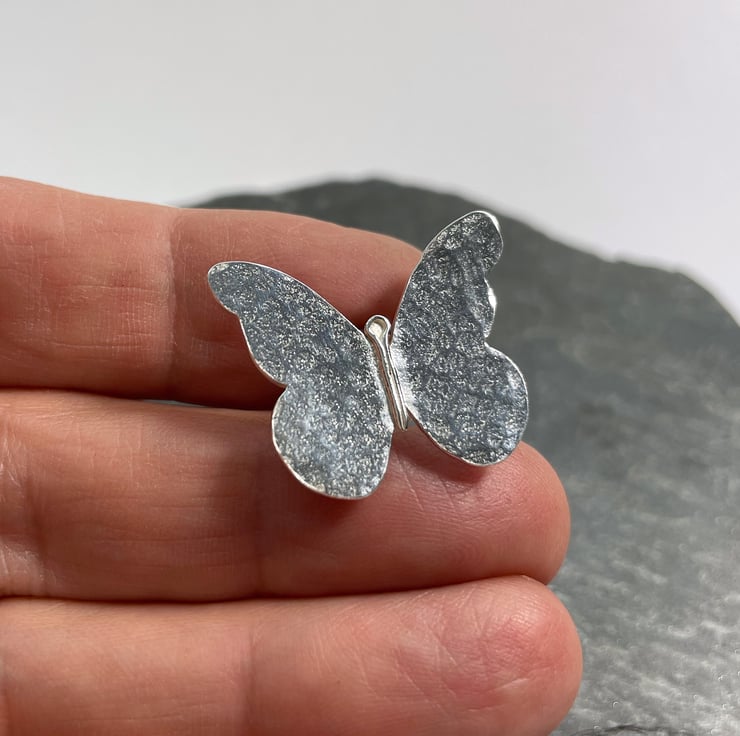 I cut the butterfly shape from sheet silver and have given it a dimpled texture that catches the light. The butterfly has a very simple wire body.