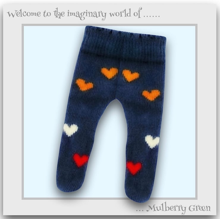 A sweet pair of blue heart tights to fit the Mulberry Green characters. The tights look lovely with the little felt shoes.