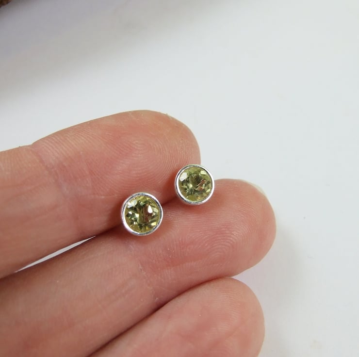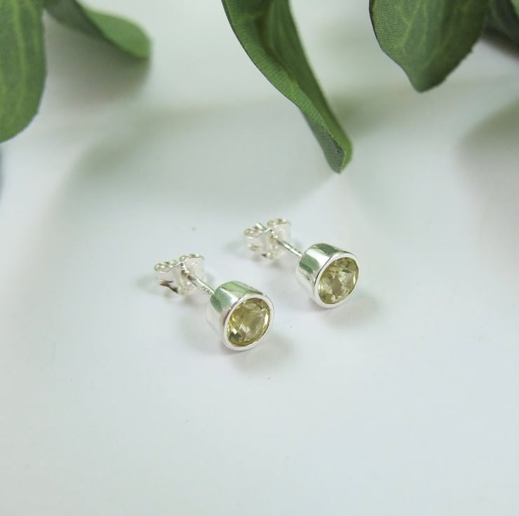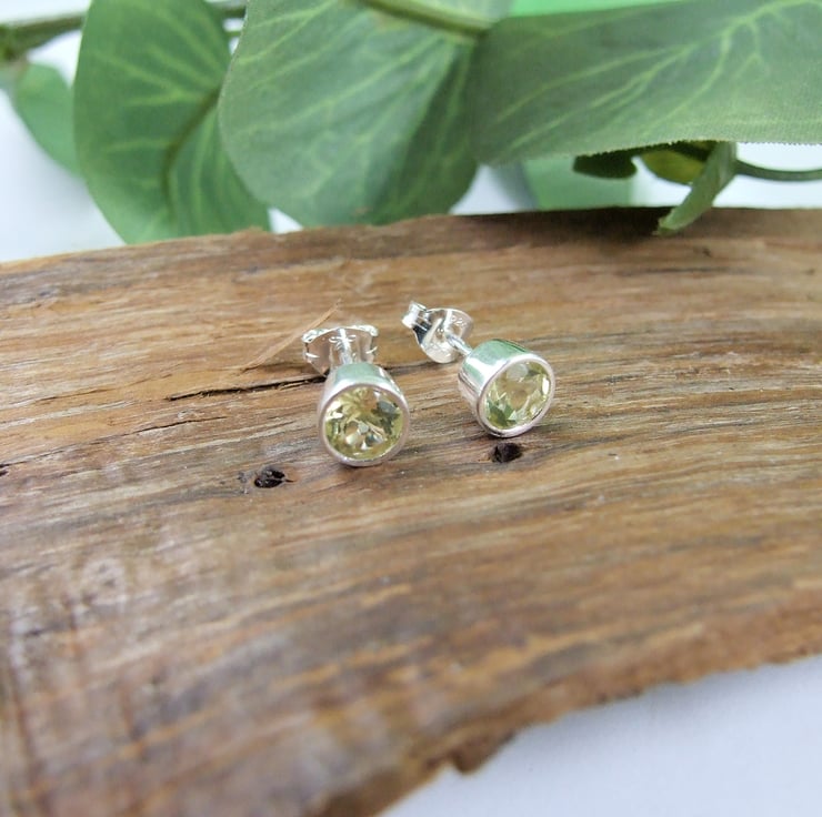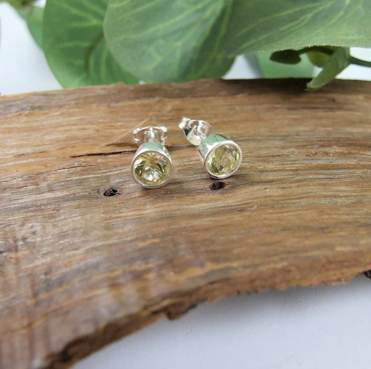 The dainty 5mm studs have been created from 5mm sparkly lemon quartz gemstones set in sterling silver bezel. Studs have butterfly backs.