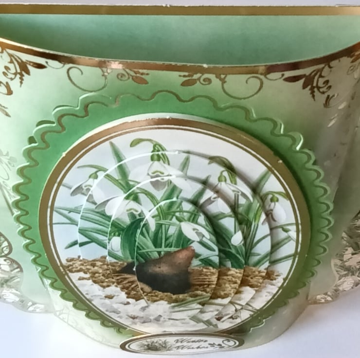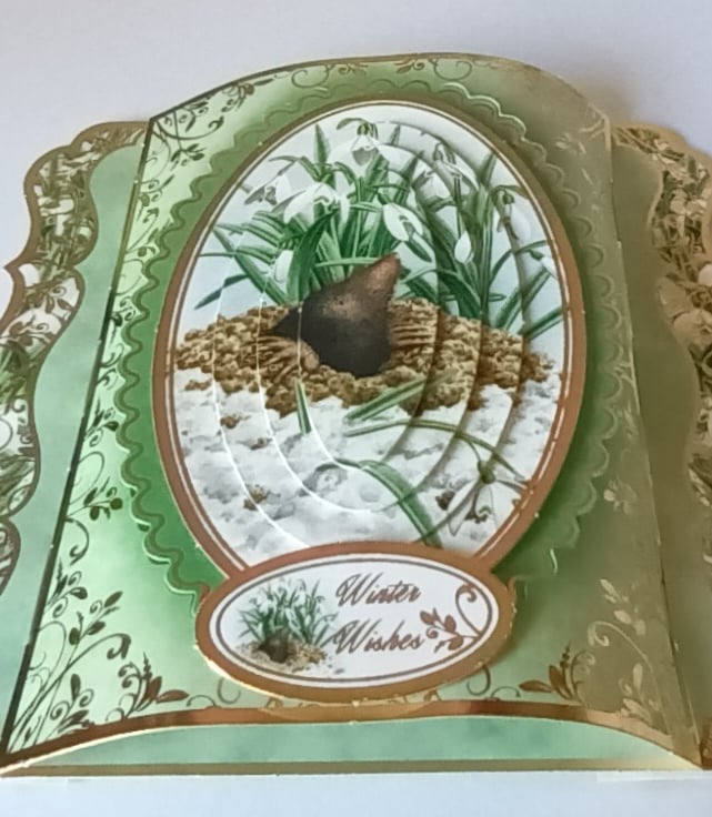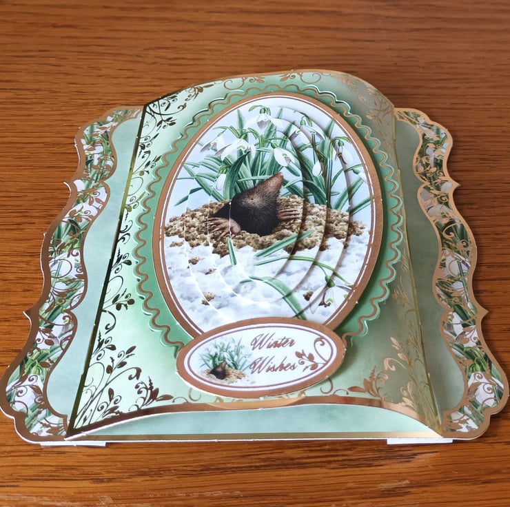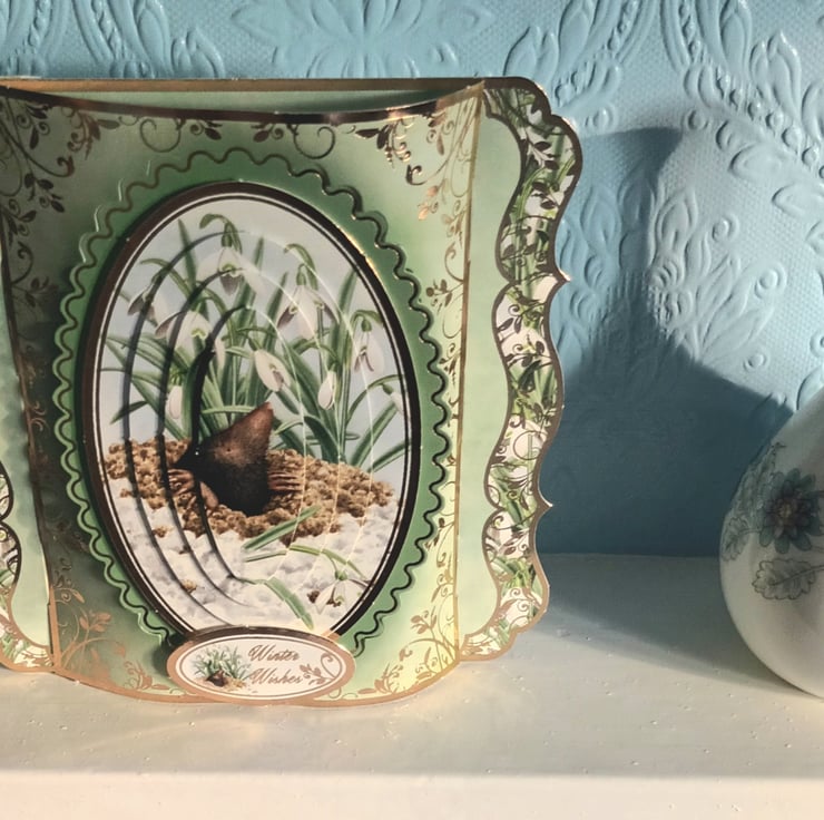 A pretty and unusual Christmas Card featuring a decoupaged snowy mole with the sentiment “Winter Wishes”