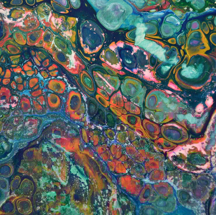 I love the combination of the rich colours used in this. I love how the colours emerge from the cells and the mixtures you get, no 2 pours are ever the same even if you use the same colour mixes so it is always interesting waiting for the patterns to emerge and come to life.