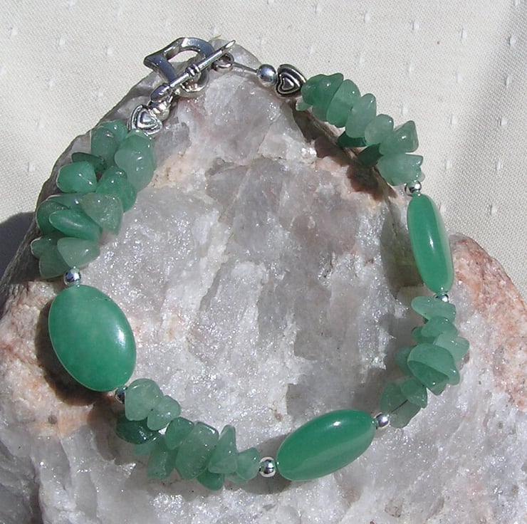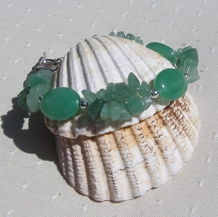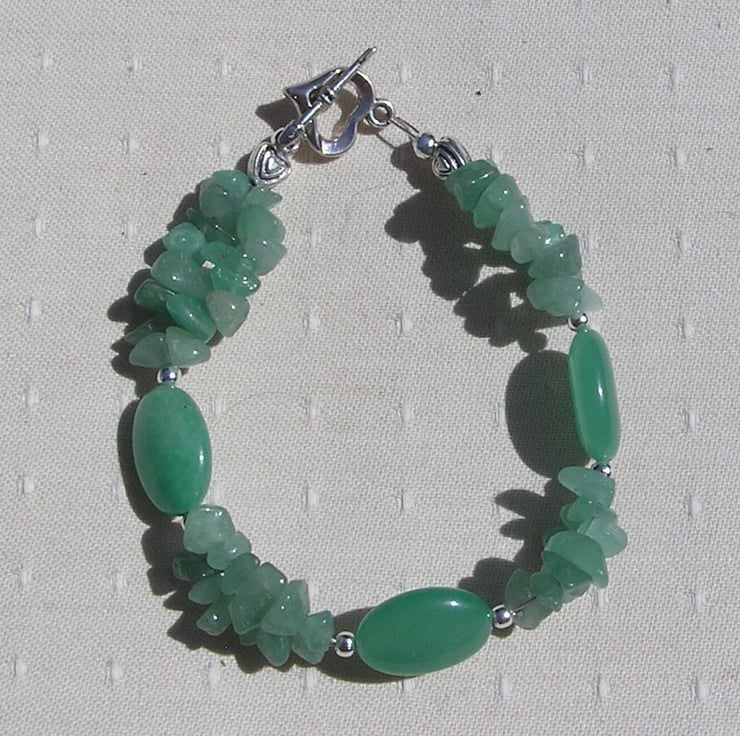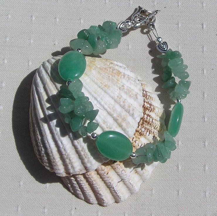 This Stunning Bracelet is made wholly from Green Aventurine beads - Puffy Oval beads separated by double-stranded Green Aventurine Gem-Stone Chips – A touch of elegance that will look stunning either worn casually or with something more Elegant for a Special Evening out