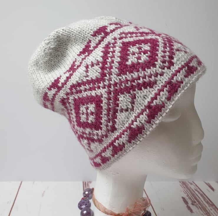 Hand knitted hat for women, Fair isle knit hat, Unique gift for her