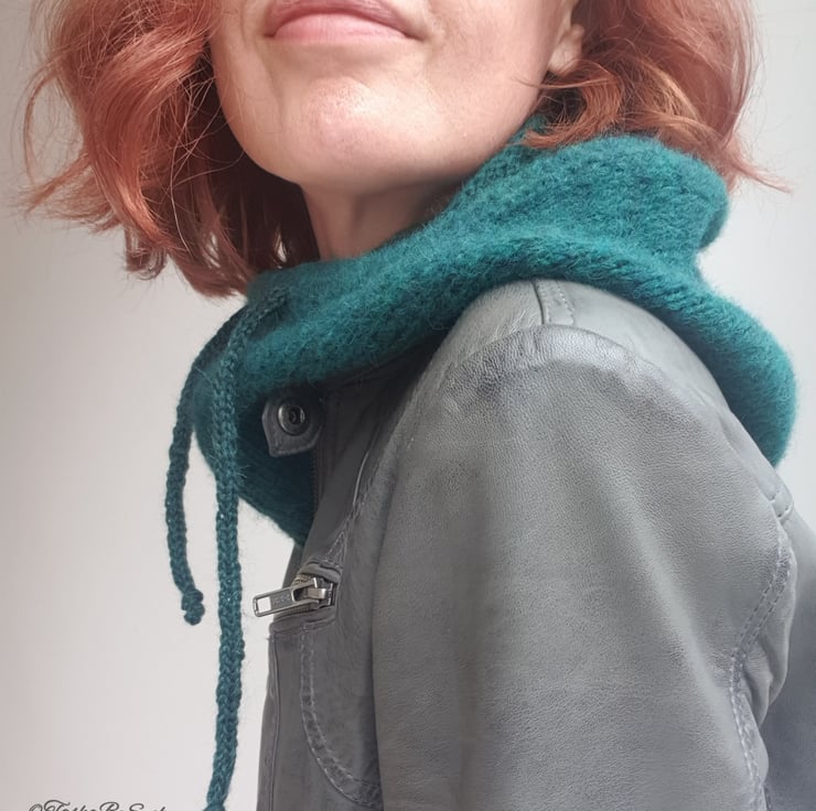 Hand knitted hood - Alpaca scarf.