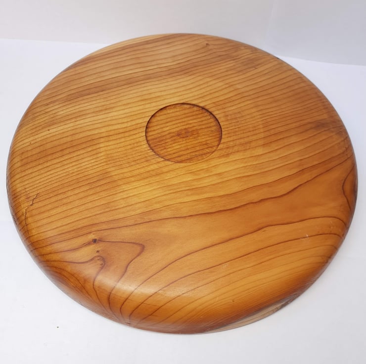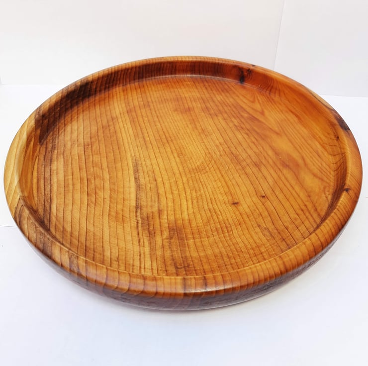 This is a large (measuring roughly 10" across) and stunning yew platter. Incorporating not just the vibrant orange heartwood but also cream sapwood, this would make an eye-catching centrepiece. Finished with food safe pure tung oil, it could also be used to serve cold meets, cheeses, or any other snack.