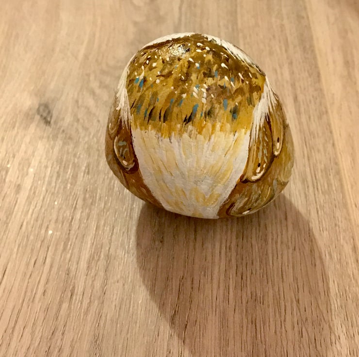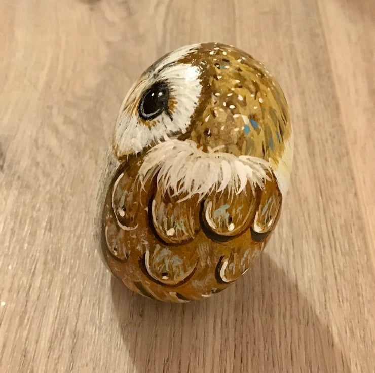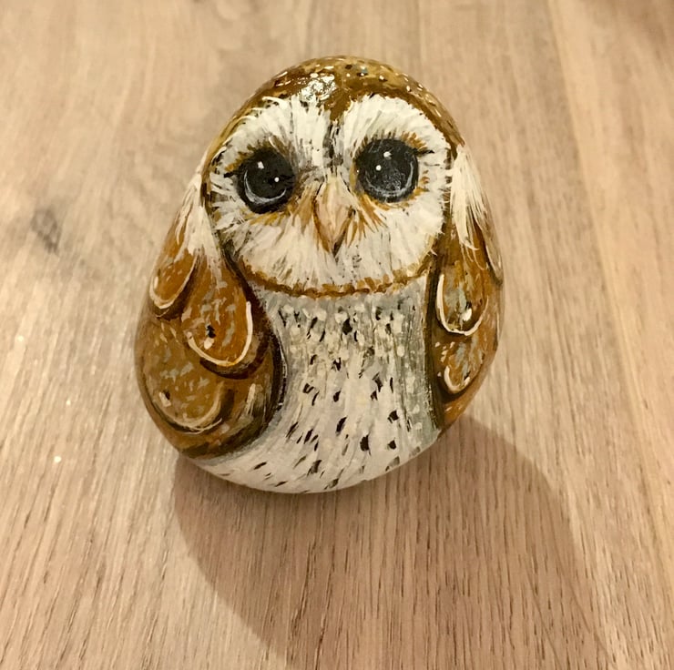 This owl has been painted onto a smooth stone and glazed for a glossy protective finish. It will be sent second class signed for within the UK please message for overseas postage costs