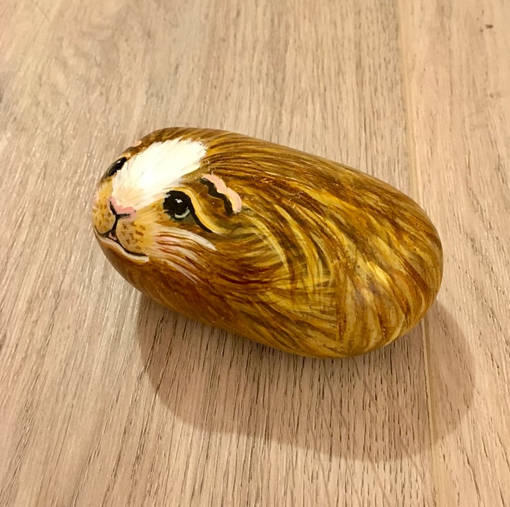 This guinea pig has been painted onto a smooth stone and glazed for a glossy protective finish. It will be sent second class signed for within the UK please message for overseas postage costs
