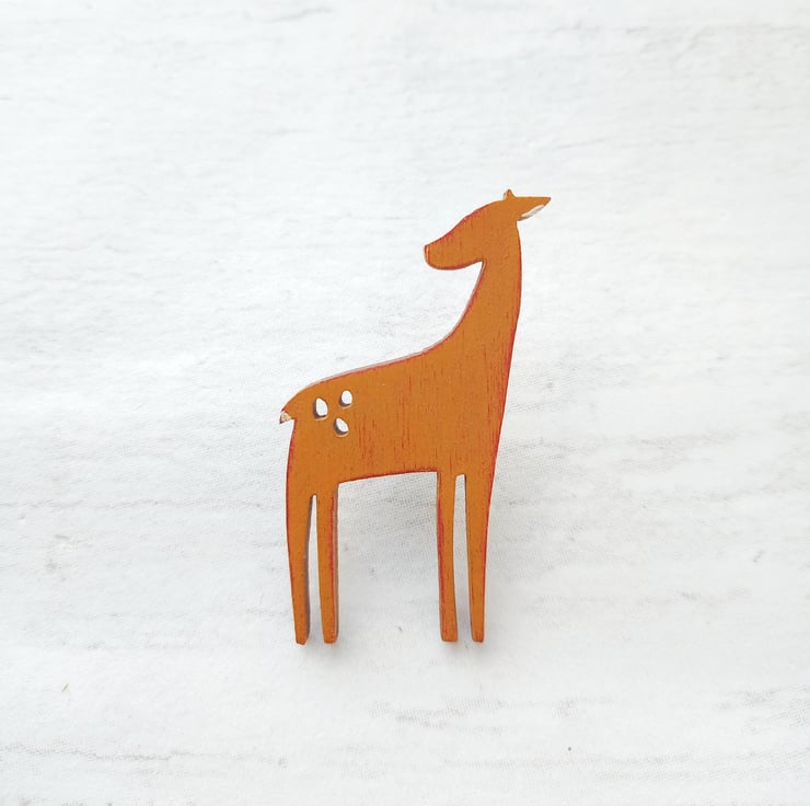 The deer brooch measures approx 5.5cm x 3.5cm, with a metal lapel pin fastening on the back, perfect for wearing on sweaters and jackets. It comes attached to a backing card - ready to give as a gift or keep as a present to yourself!