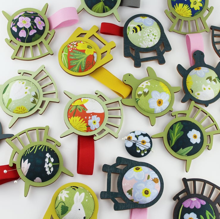 The pin cushions are handmade in Yorkshire by us, and each one is unique.