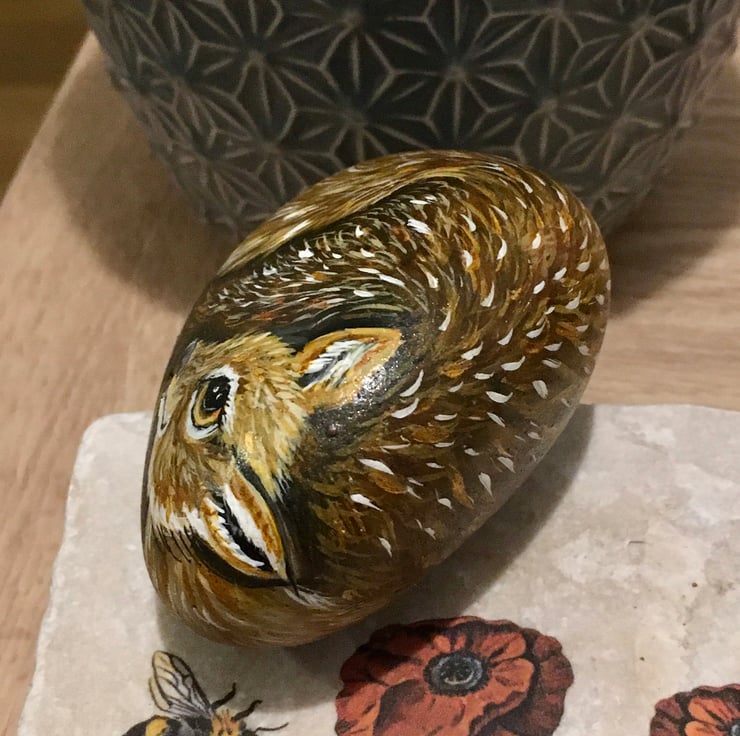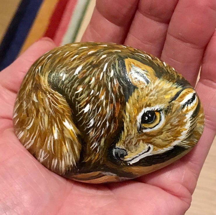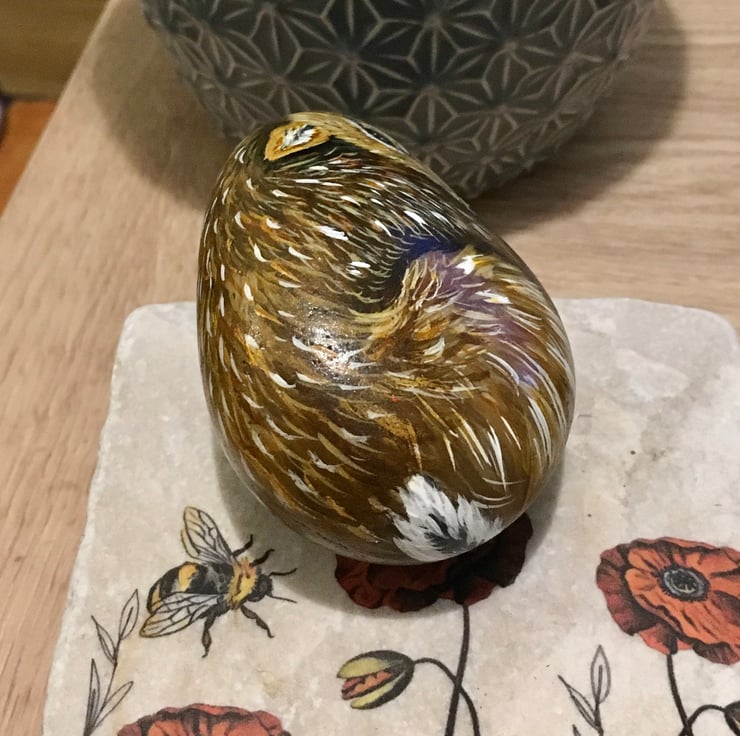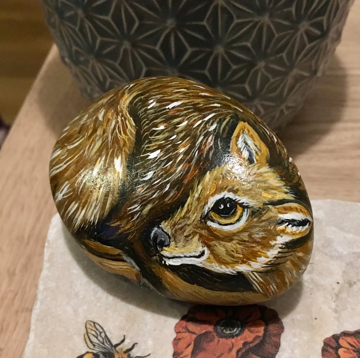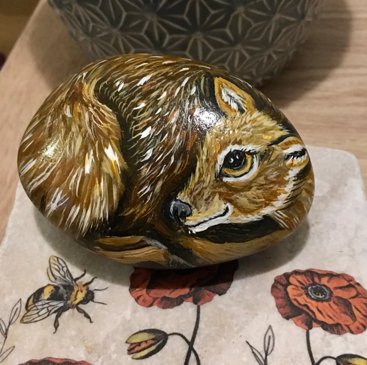 This little deer has been painted onto a smooth stone and glazed for a glossy protective finish