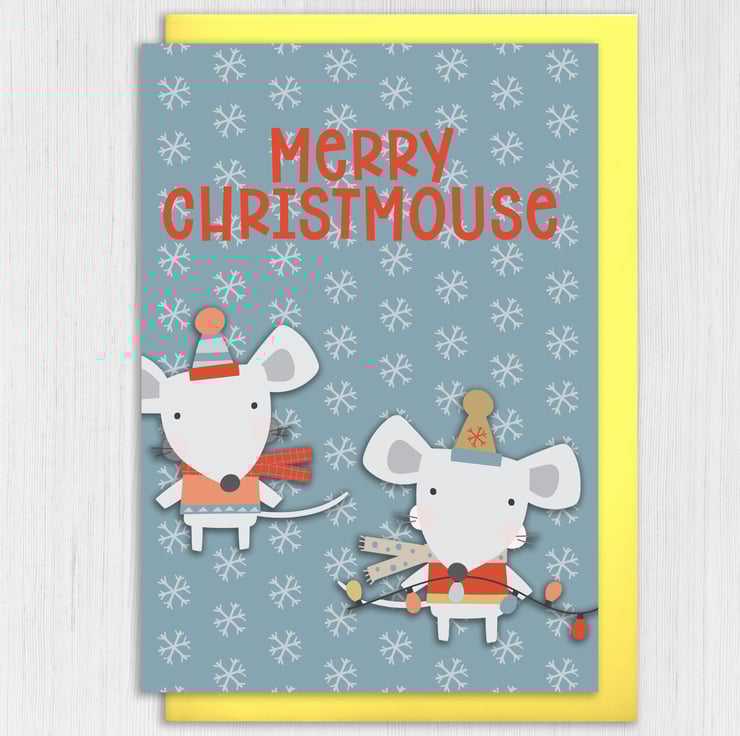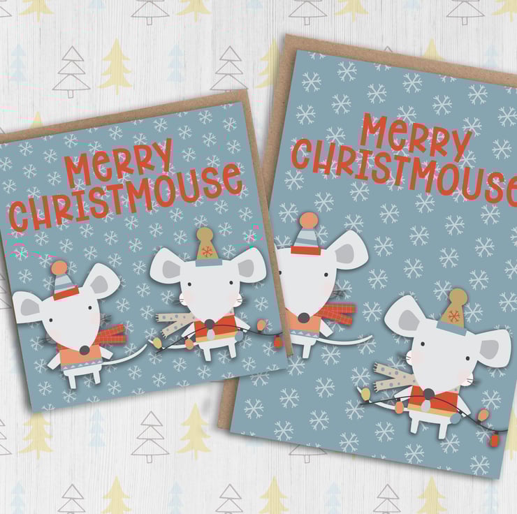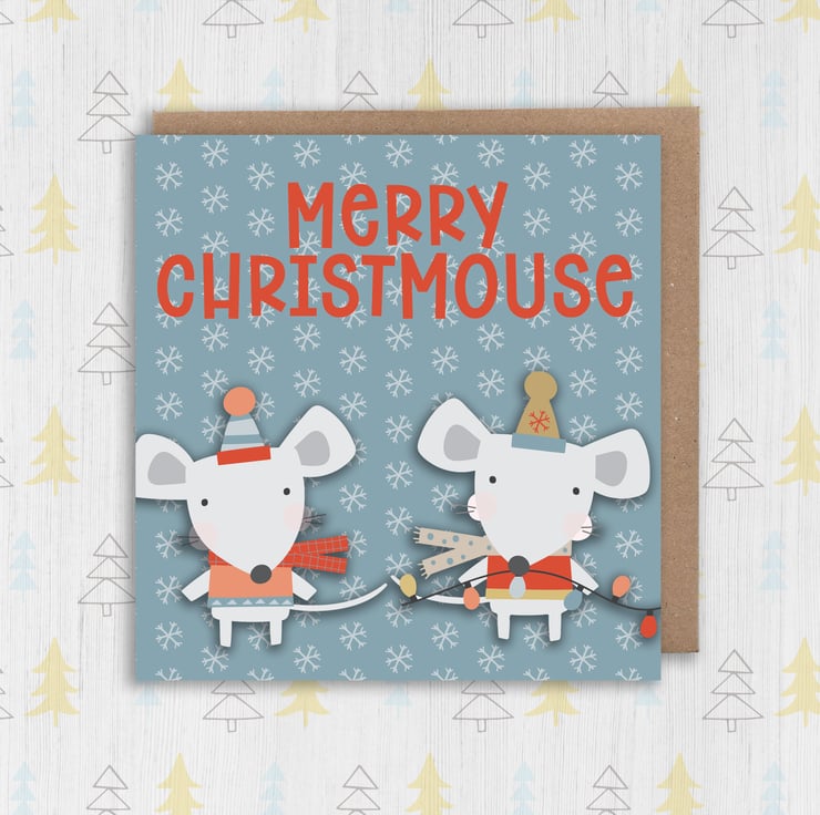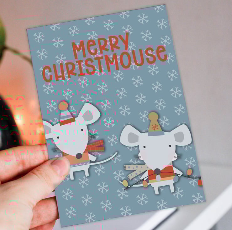 Mouse, mice Christmas, Holidays card: Merry Christmouse (Size A6/A5/A4/Square 6x6")