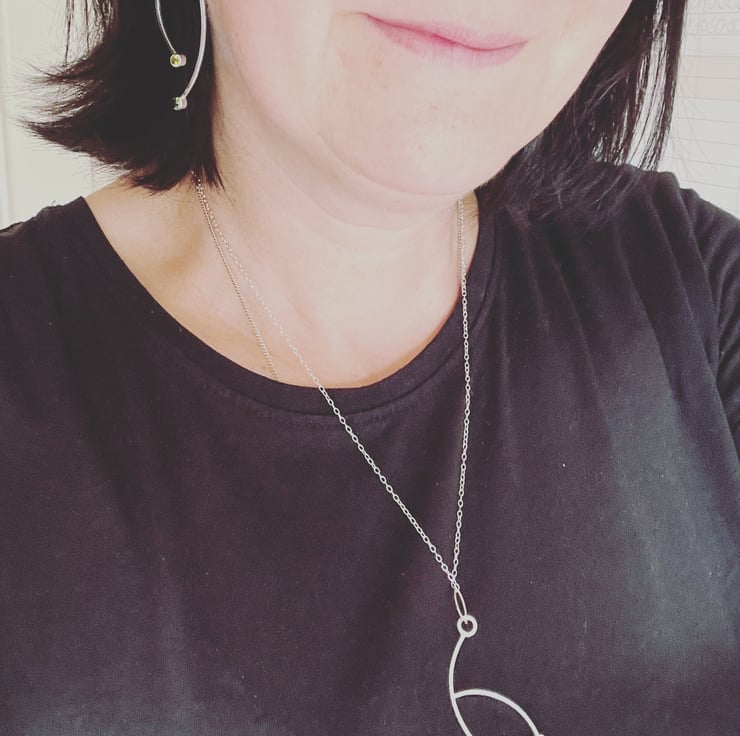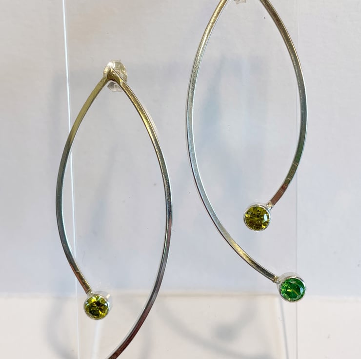 These double drop earrings are handmade in sterling silver and have gemstones representing the Olive flower, in the language of flowers the Olive stands for Healing.