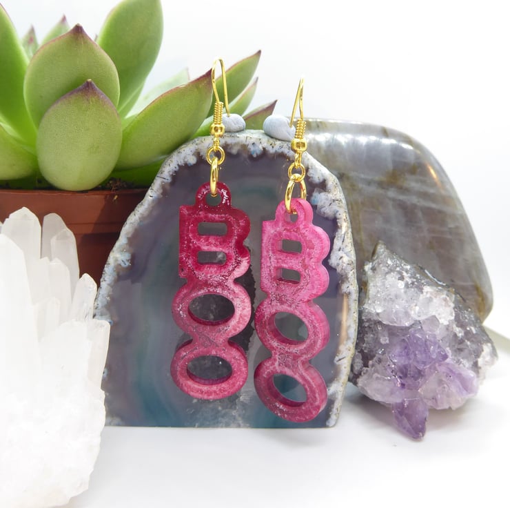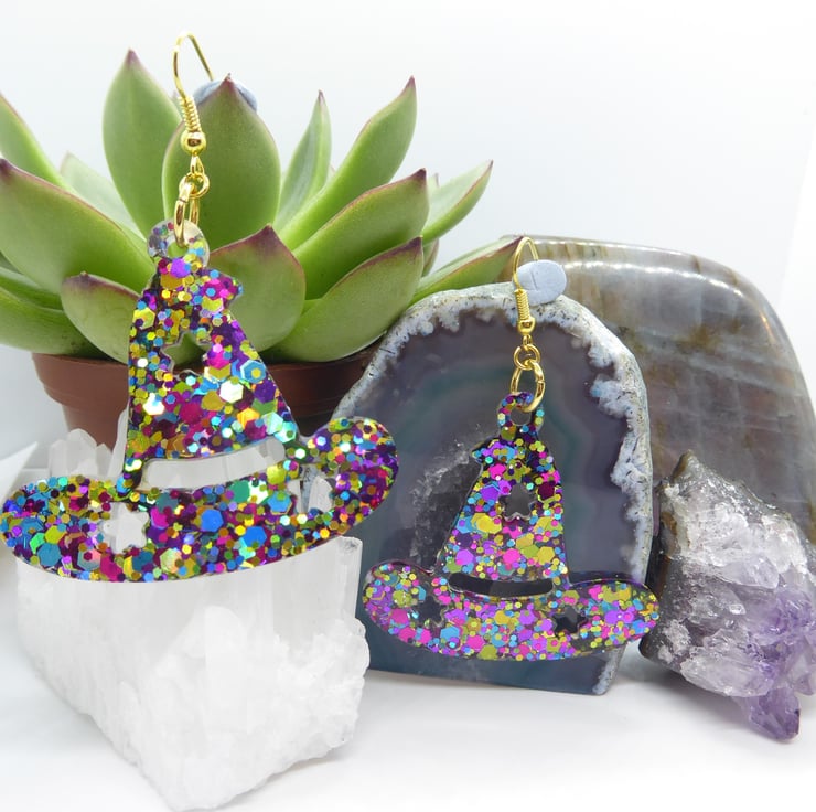These bold and spooky earrings are made with cruelty free epoxy resin and alcokol inks. They are on gold plated earring hook.