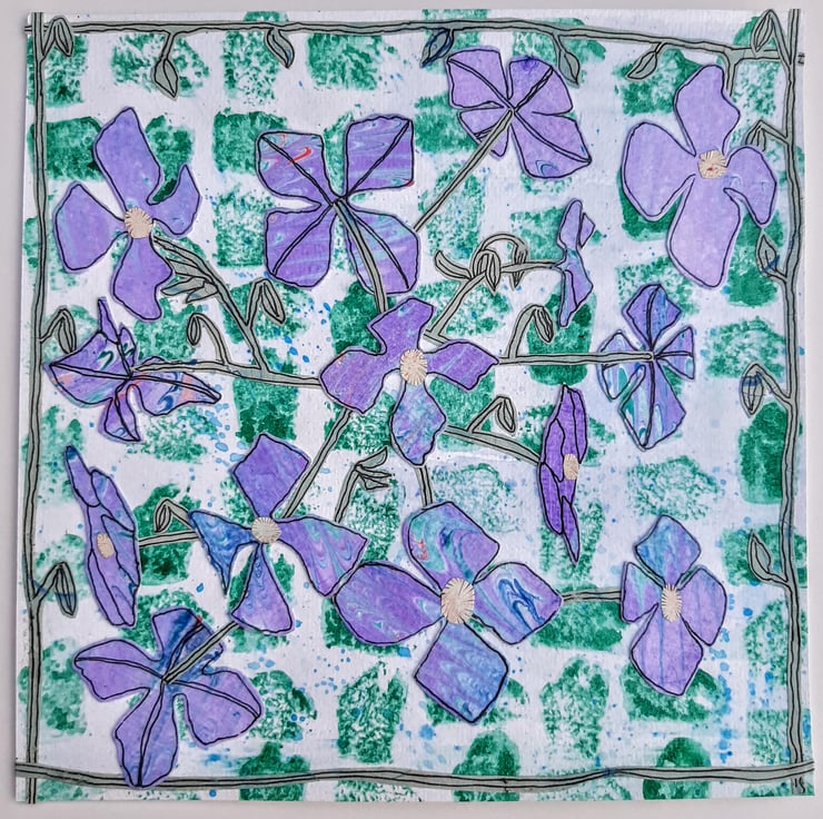 These designs feature printing, paper collage and sewing (hand and machine), often using small scraps of paper left over from other projects, that are too beautiful to throw away or discard.