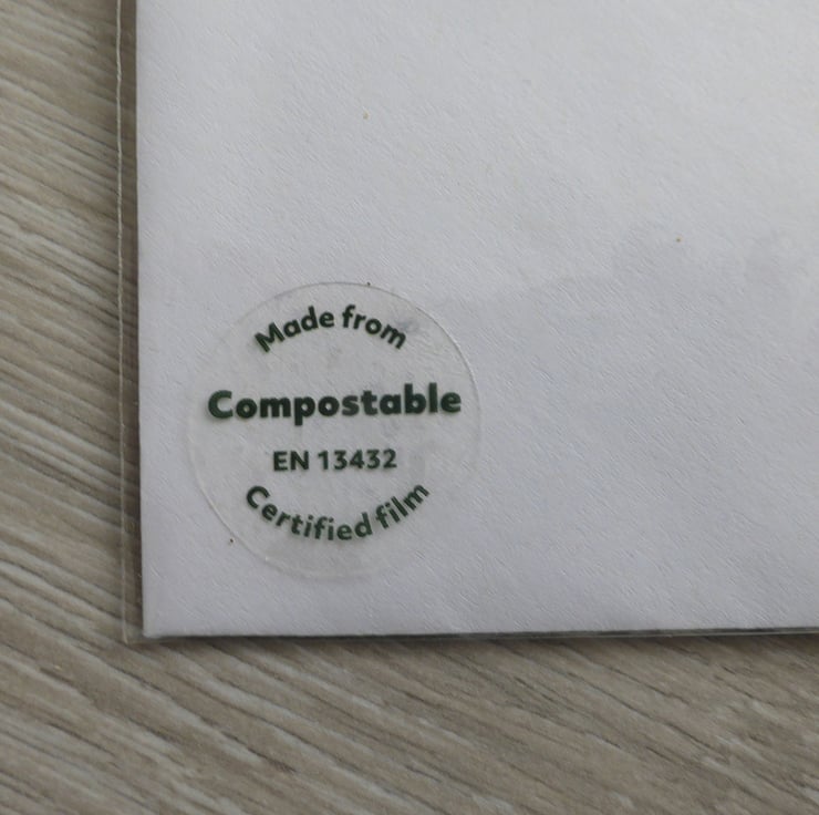 The square card measures 14 x 14 cm and comes complete a kraft recycled paper envelope and as I am trying to cut down on using single-use plastic, the card is wrapped in a certified compostable film, making it plastic free.