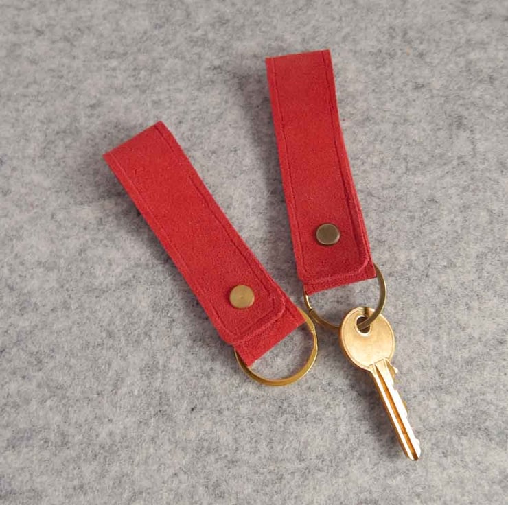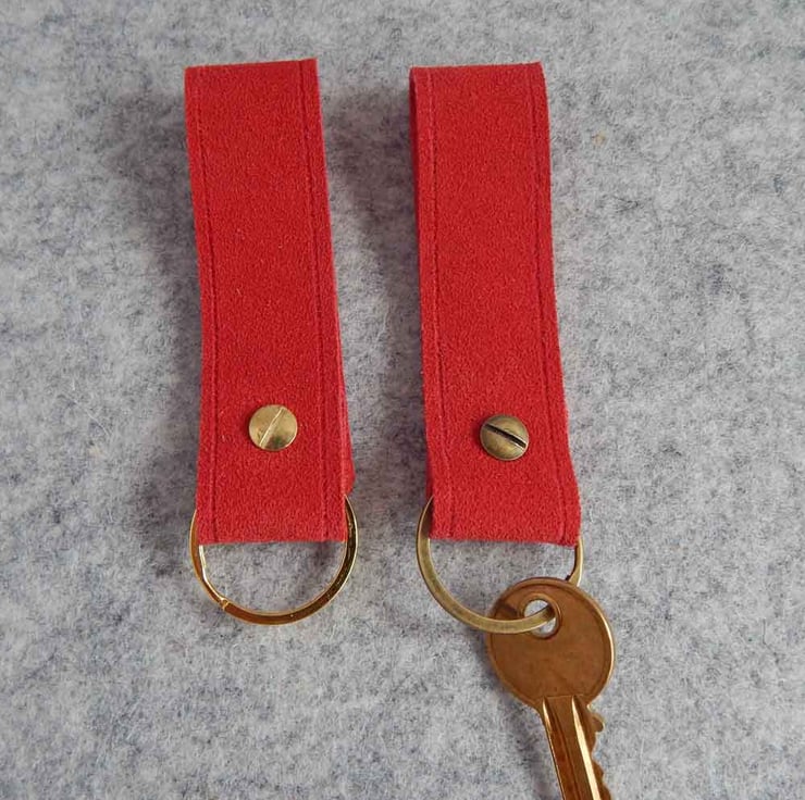 These key fobs are made from high quality calf suede leather, in bright red.