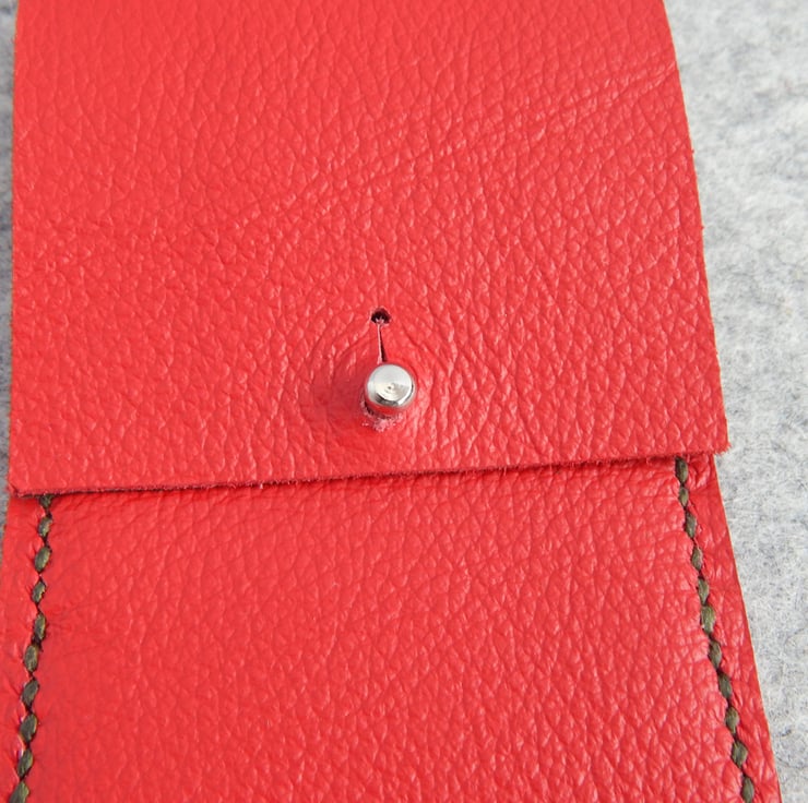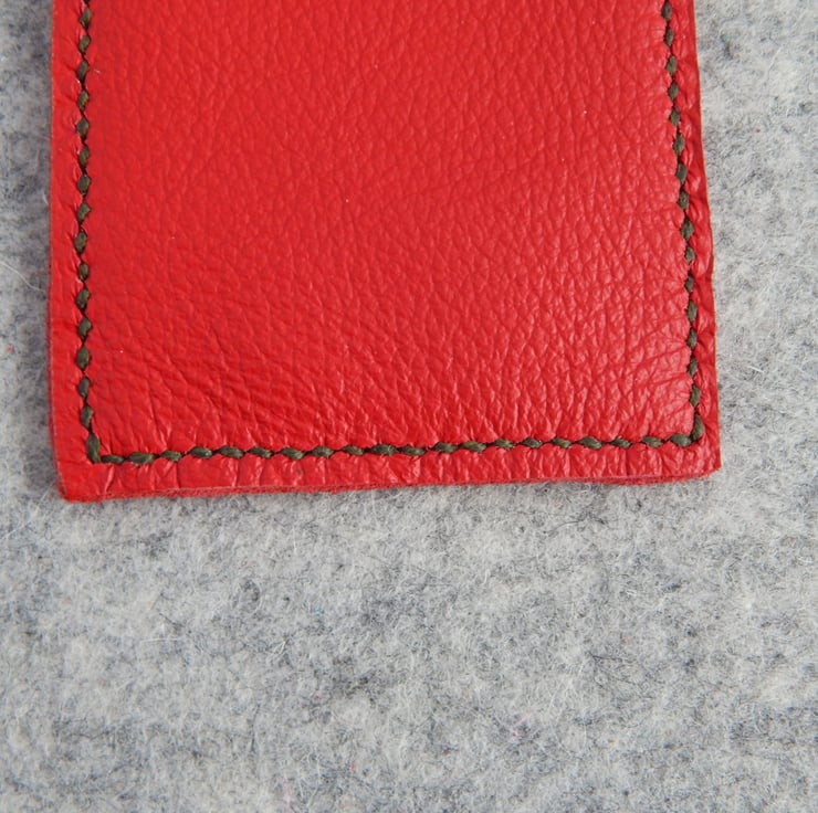 - Hand made from full grained soft leather, in pillar box red.