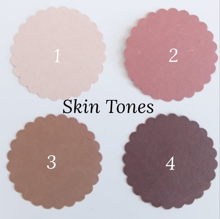 Dress colour, Skin tone, hair colour, hair length, eye colour