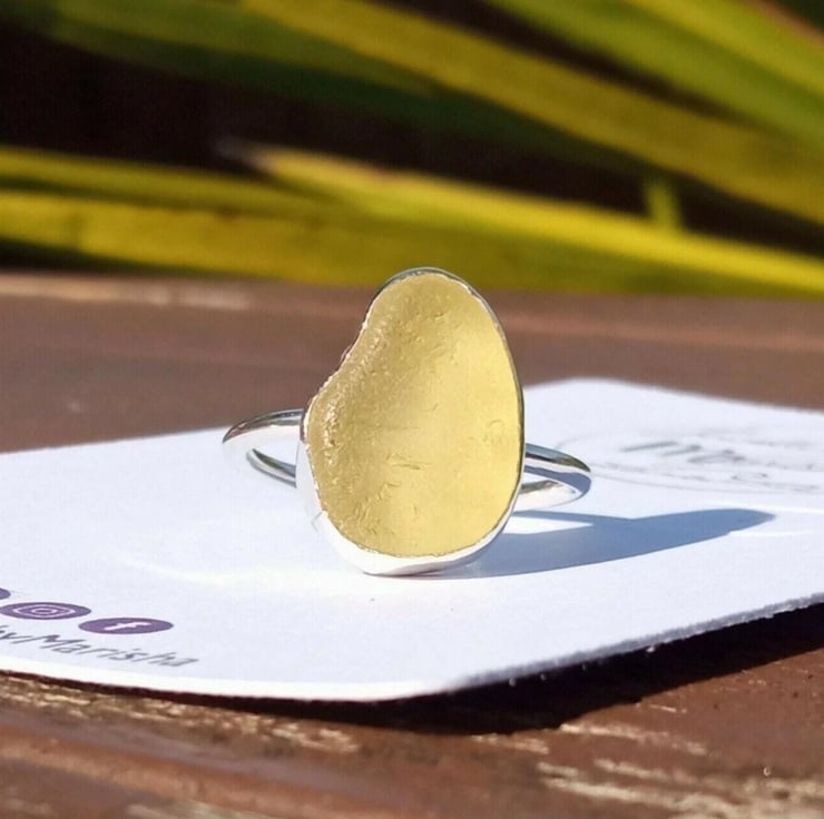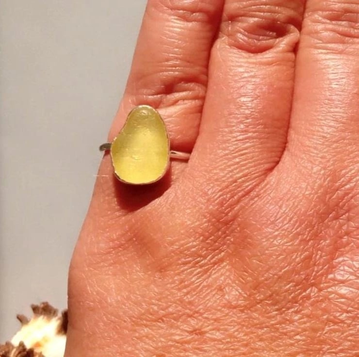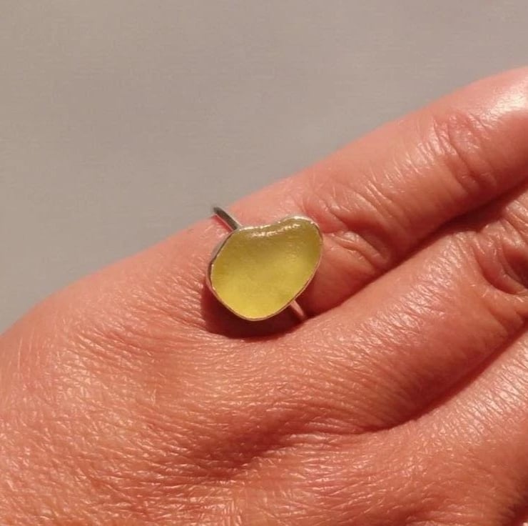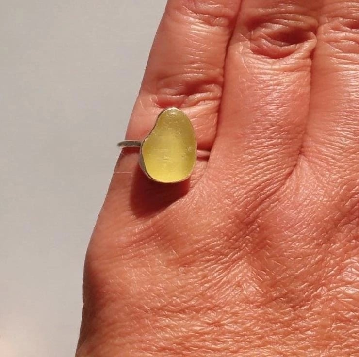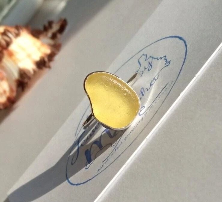 Lemon Yellow Seaglass Ring in Fine Silver & Recycled Sterling Silver UK Size L