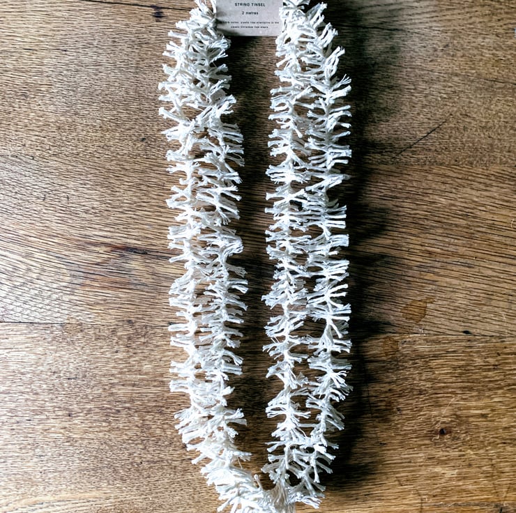 There's so much plastic in Christmas decorations (especially the ones made by my children), and tinsel is a terror. It's PVC, mass produced and cheap, which means come January, when we're desperately wanting all signs of Christmas to be magicked away to the attic, it's often thrown out with the tree.