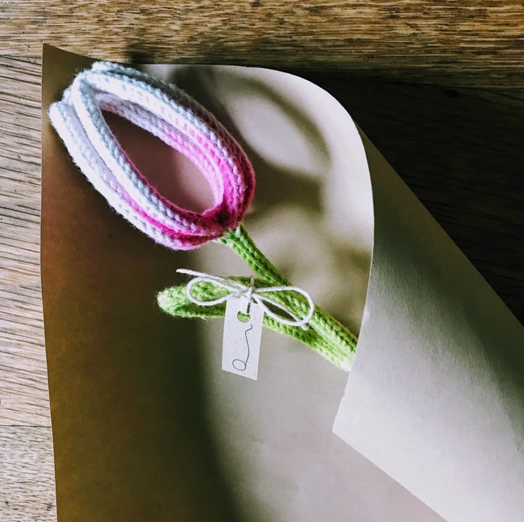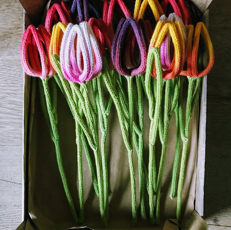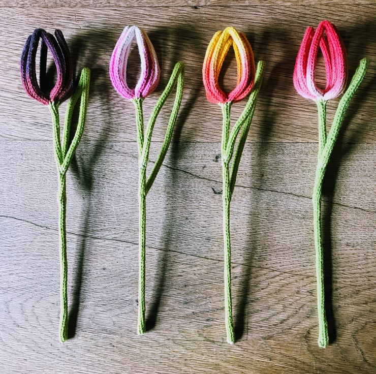 Tulips are one of my favourite flowers, so I love making theses simple tulip stems. Each stem is knitted in Everlasto Natural Cotton String, sculpted by hand and dip dyed in bright colours to give a beautiful ombre effect.
