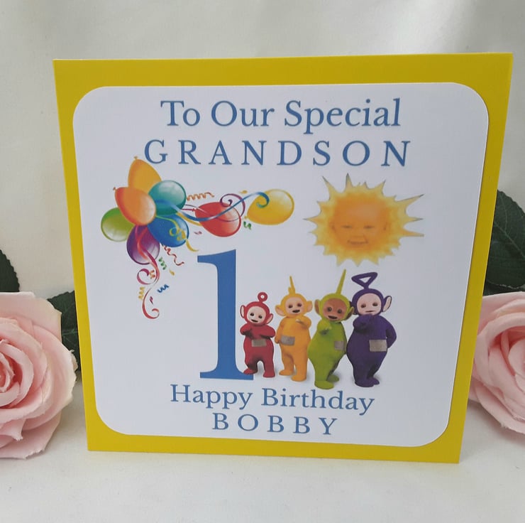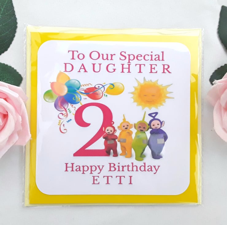 Personalised Teletubbies Birthday Card, Any age/relationship