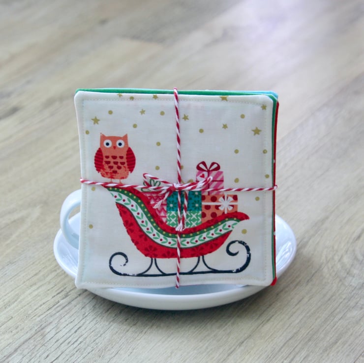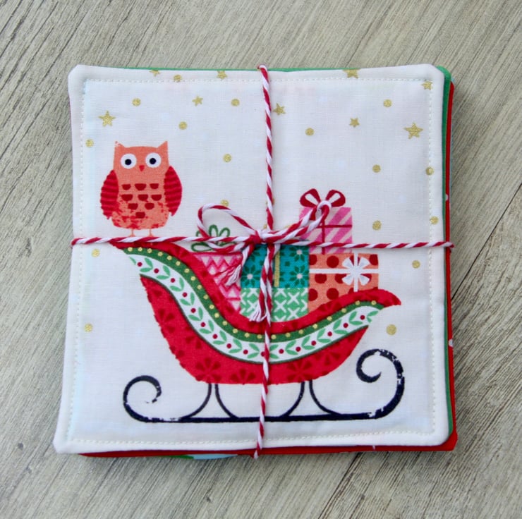 The coasters are approximately 12.5cm (5 inch) square and come as a set, beautifully tied with red and white twine to add even more festive joy.