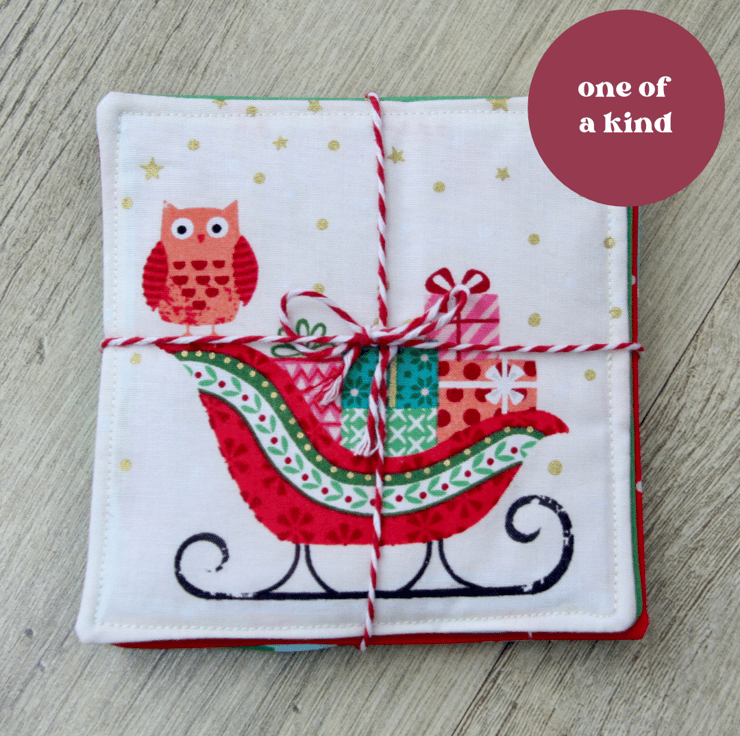 I loved the little scenes on this festive fabric and thought they’d make perfect coasters!