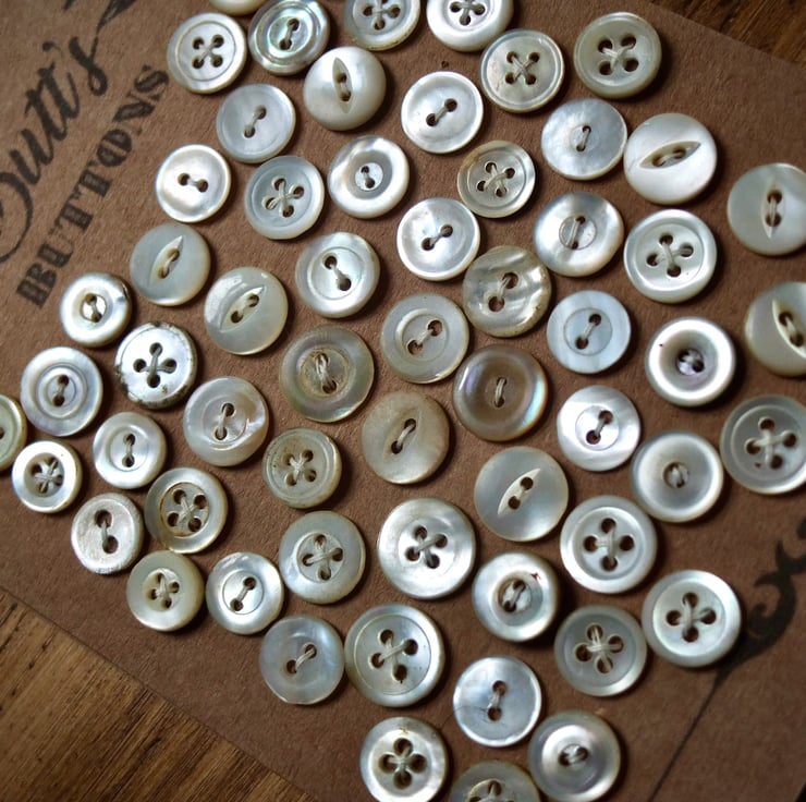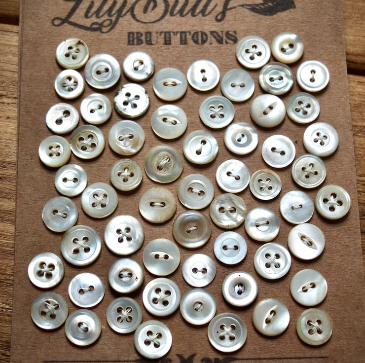 60 Vintage Mixed Mother of Pearl Buttons, 10-12mm, these are shirt buttons size, and so pretty! Lot's of different styles.
