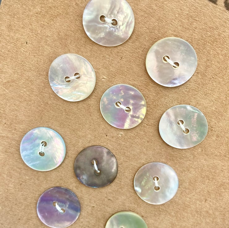 10 Abalone/Paua Shell Buttons 16mm, these have lovely grey, blue and pink tones!