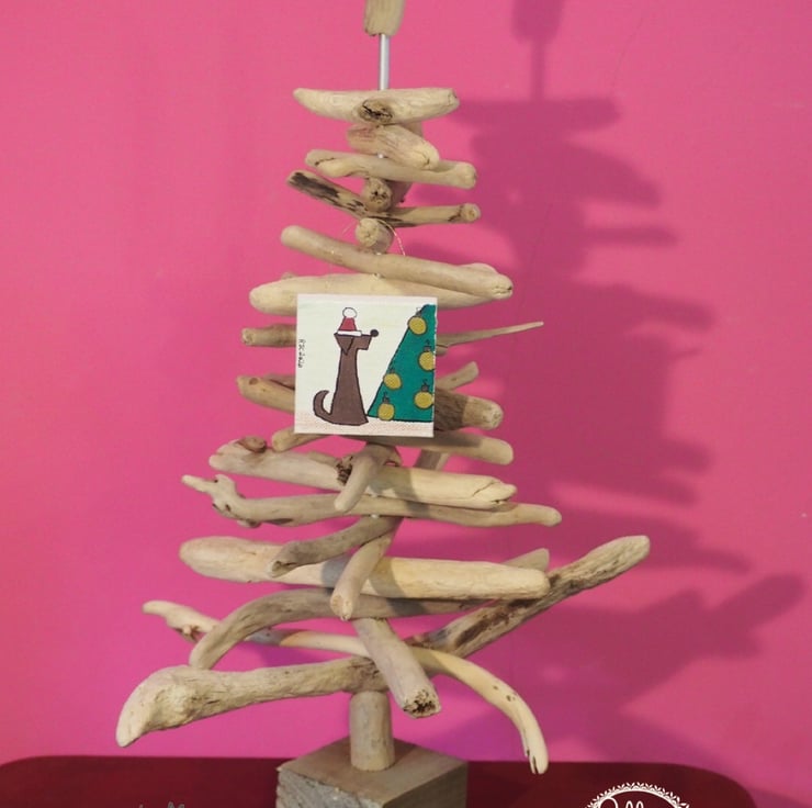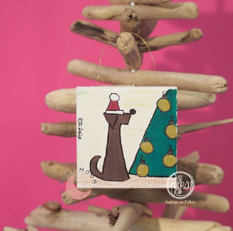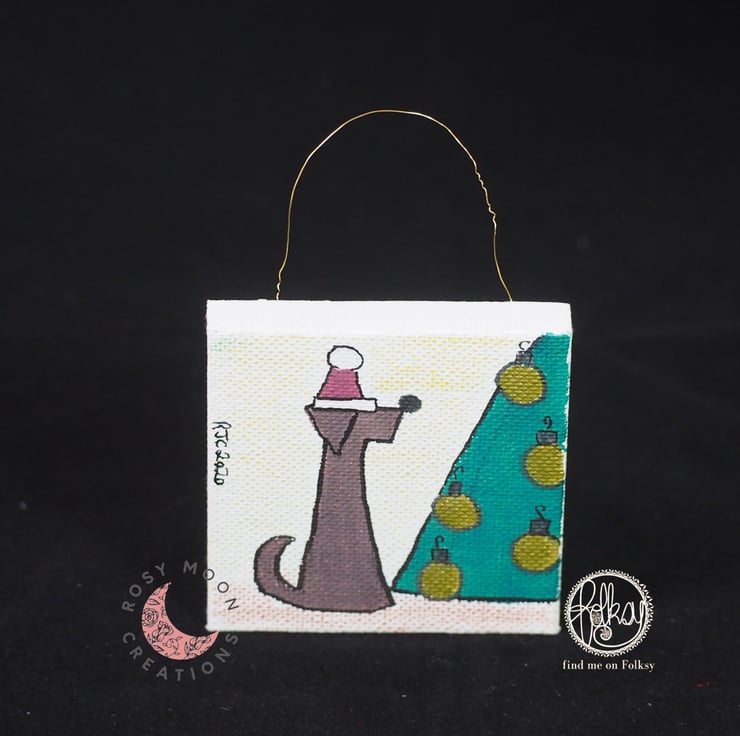 This one off hand drawn canvas Christmas decoration measures approximately 7x7cm and is hung using an upcycled copper wire.