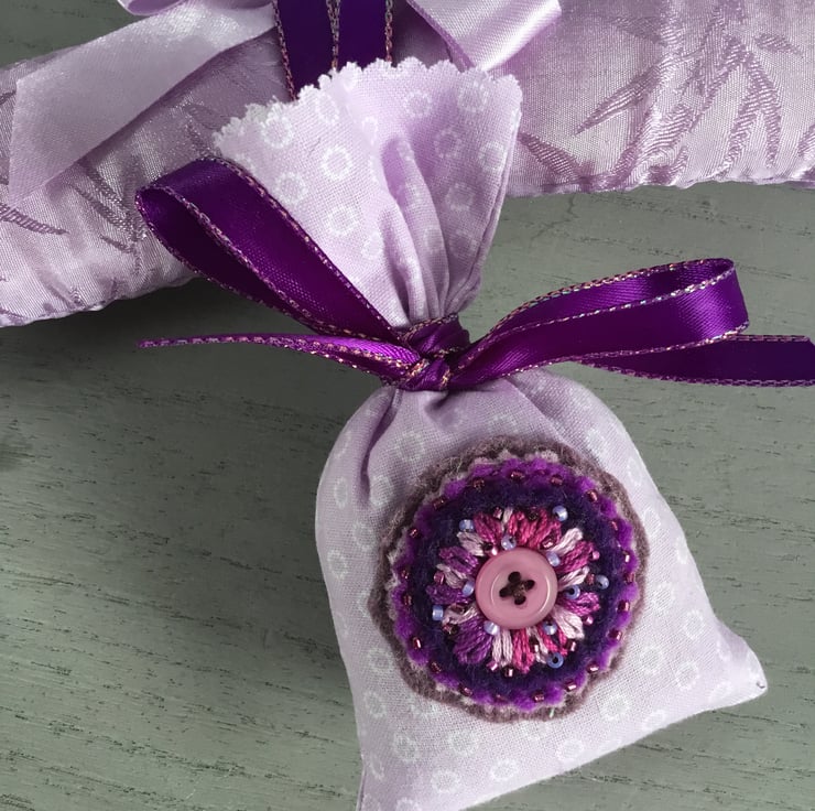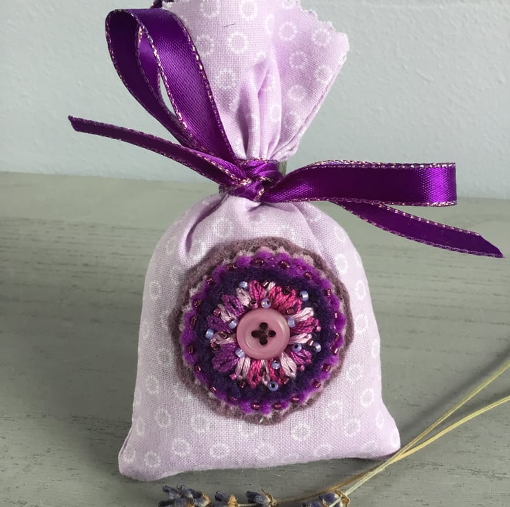 I loved hand embroidering this lavender bag in pretty shades of lavender, pinks and purples and filling it with lavender from my Yorkshire garden.