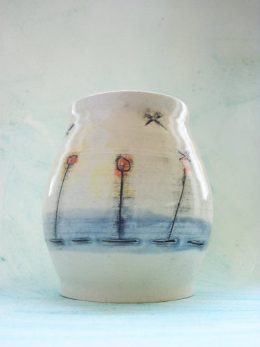 - Hand thrown pot made using white earthenware.