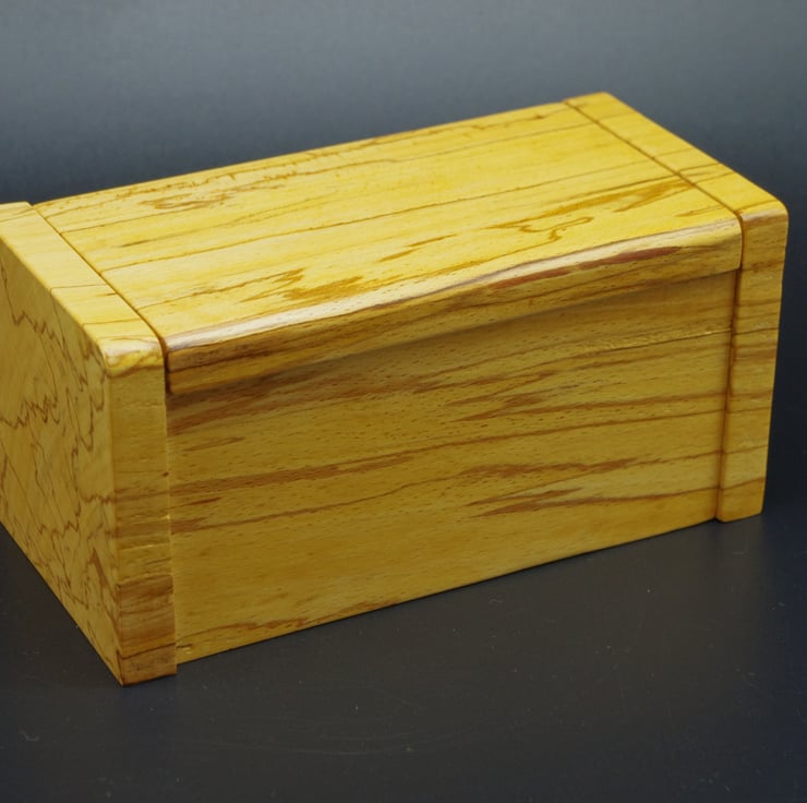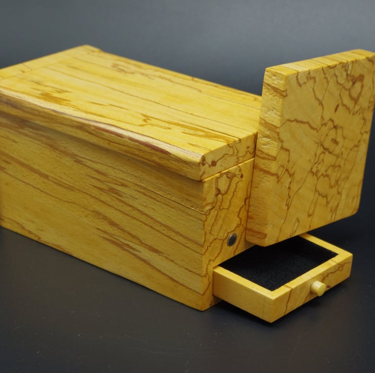 Wooden trinket, ring box with secret drawer. Handmade. Coloured Beech.