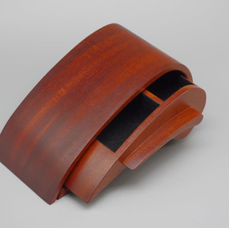 Most of the wood I use is locally produced. I do also use some exotic species but this is always obtained from a sustainable source. All the wood classified as “endangered” is recycled. The “South American Mahogany” was once my sister-in-law’s front door.