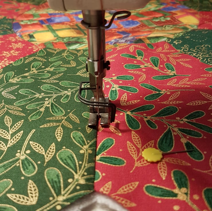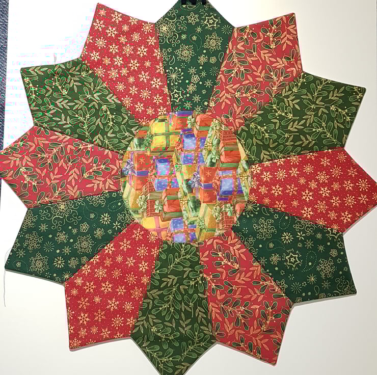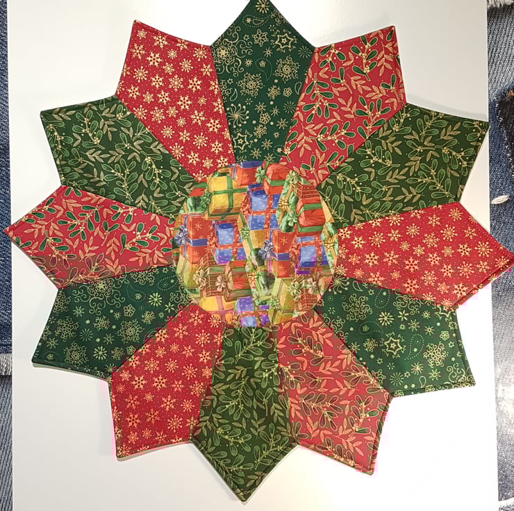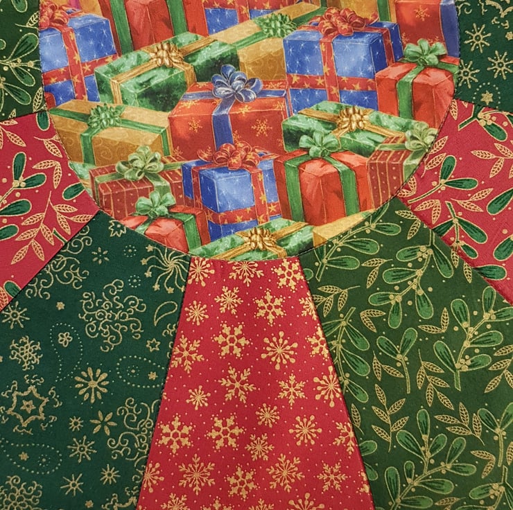 Handmade patchwork round Christmas table decoration. Can use for Christmas tree mat ,as a centrepiece for Christmas table or table cloth for a small round table.