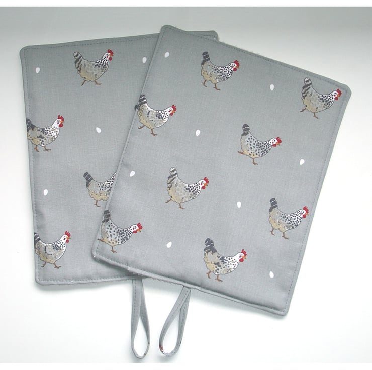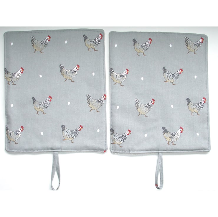 Each mat has three layers - Facing cotton fabric, a layer of padding and a layer of towelling - Making it also suitable for mopping up and pot-grabbing!