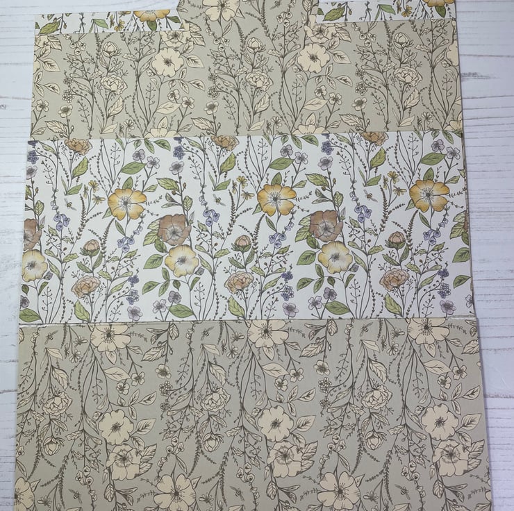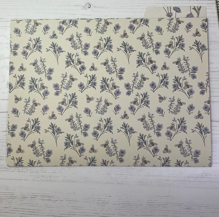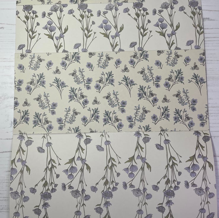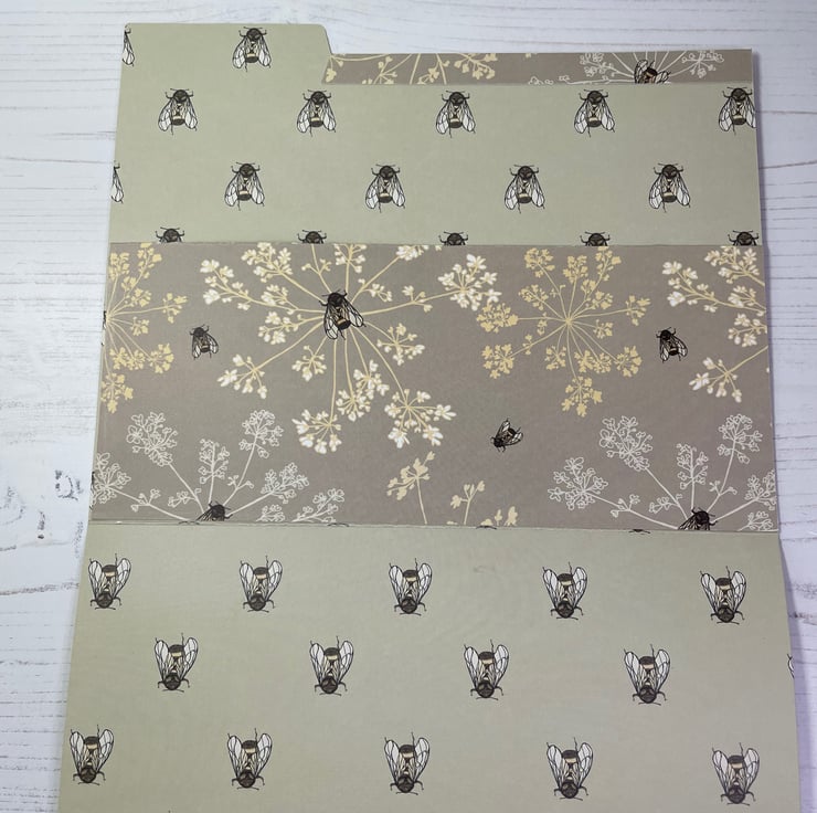 A trio of pretty card folders with internal pocket. Lined with coordinating paper. Bees and cow parsley, meadow flowers and lavender flowers.