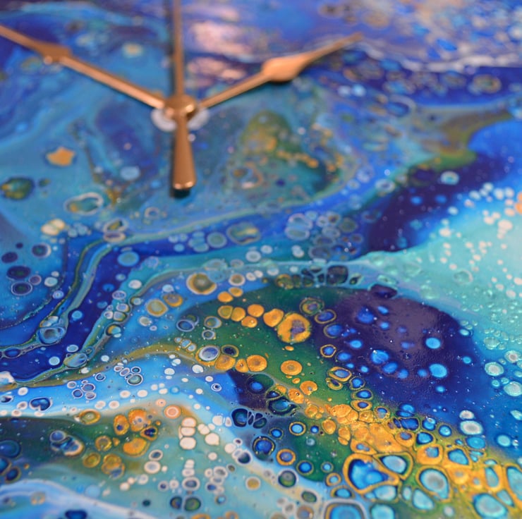 Unique gift for any special occasion or just for yourself. Each clock is created using the acrylic paint pouring method which creates beautiful individually unique patterns, because of the process no 2 clocks can ever be the same. Each one is made with thought, care, love and a thought to the colour scheme. The Clock is supplied with a AA battery and the clock mechanism is a quartz one and is guaranteed for 1 year from date of purchase. I will leave you to tighten with a 10mm spanner/pliers the clock so orientate how you would like.