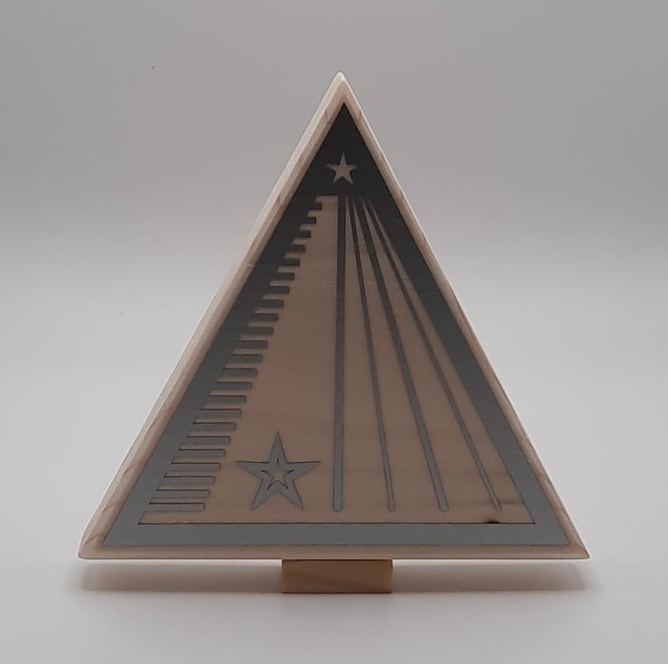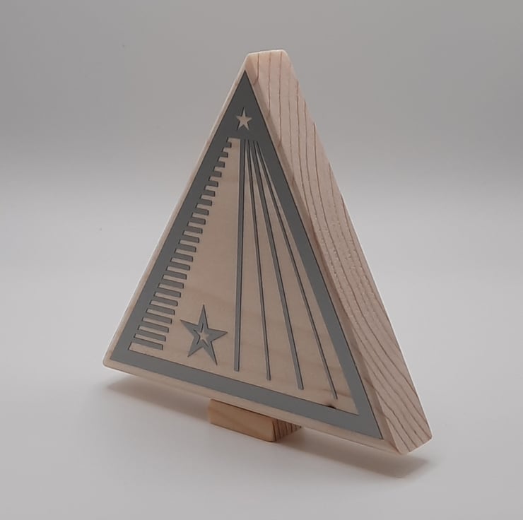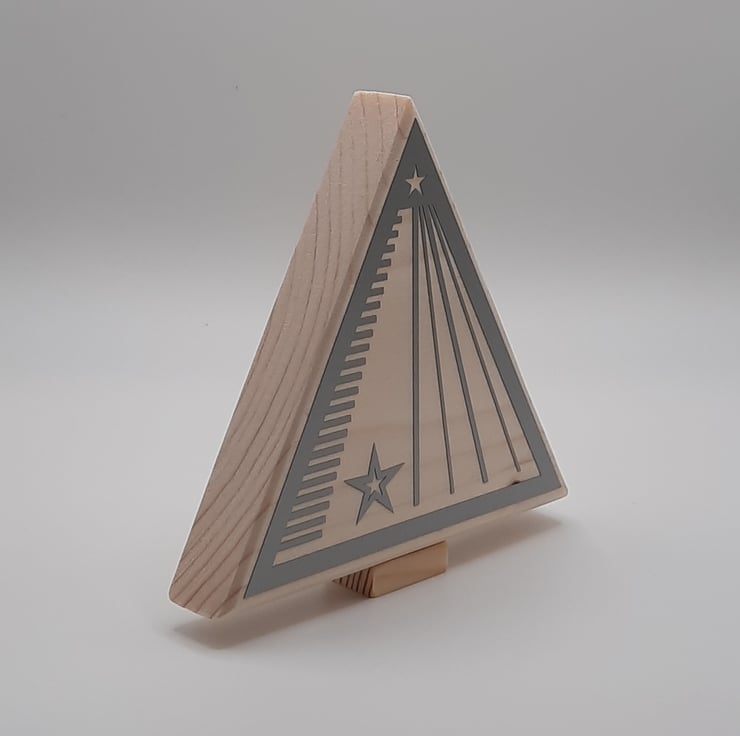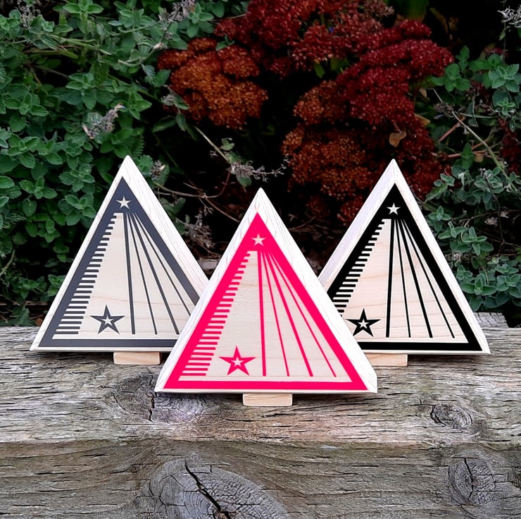 Available with in choice of Black, Silver or Neon Pink vinyl decoration, your Christmas Tree is individually cut from PEFC certified Spruce and fine sanded by hand to a beautifully smooth natural wood finish.