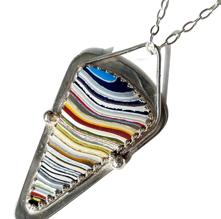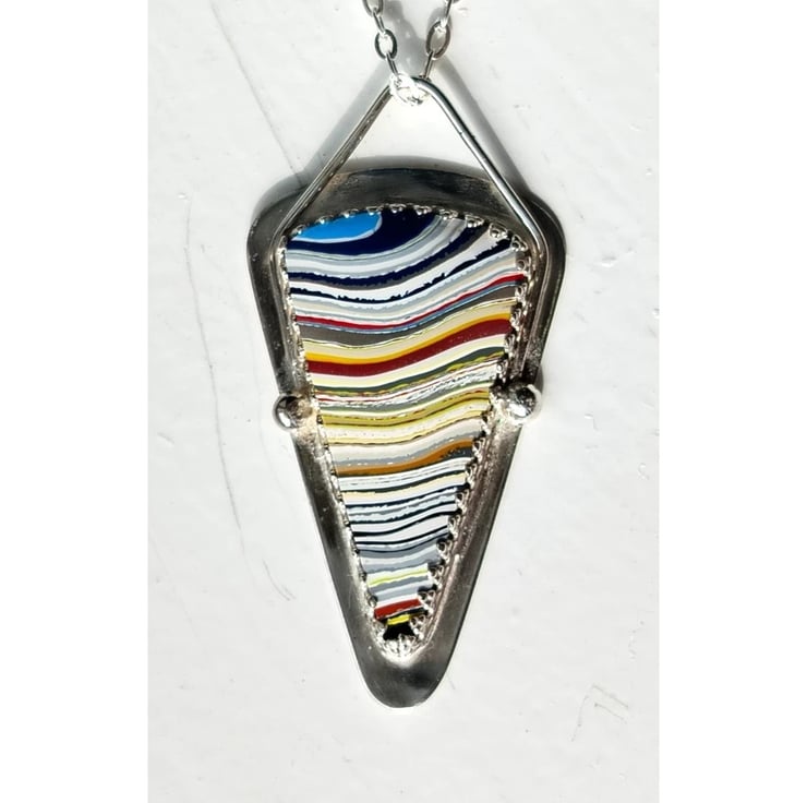 Fordite Necklace Sterling Silver Jewellery Gift Boatite Triangle Upcycle Recycle