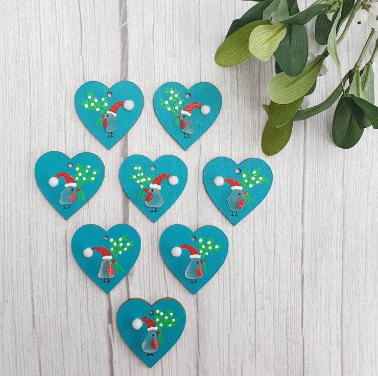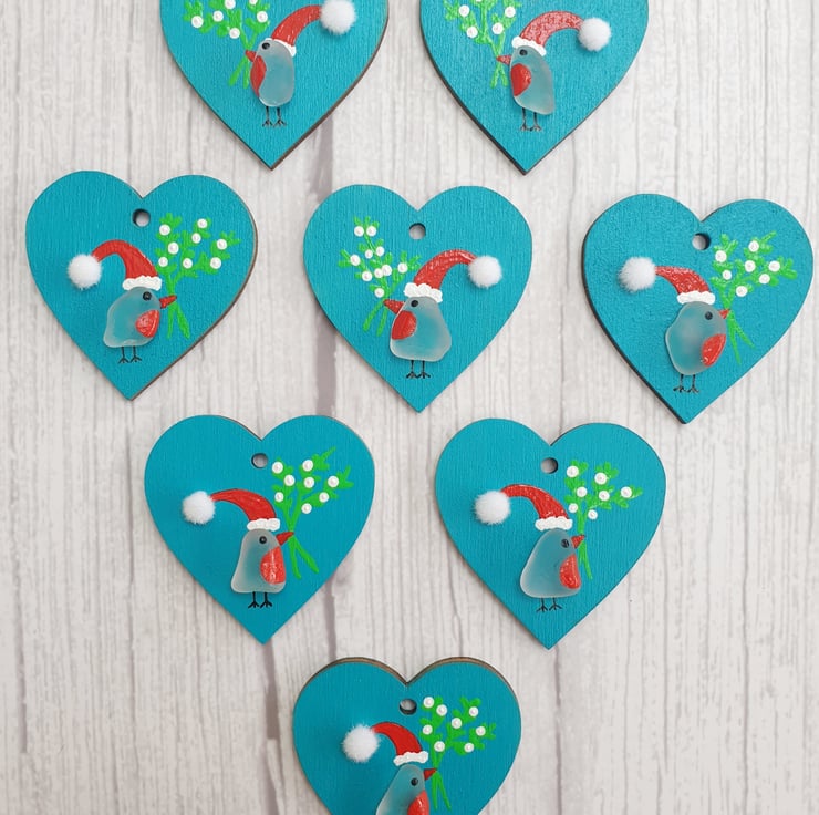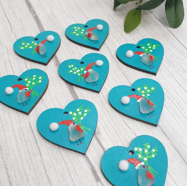 Add a little cuteness to your Christmas decor with these adorable seaglass robins wearing Santa hats and carrying mistletoes. You can also use them as tags on gifts to add a little joy to gifting.